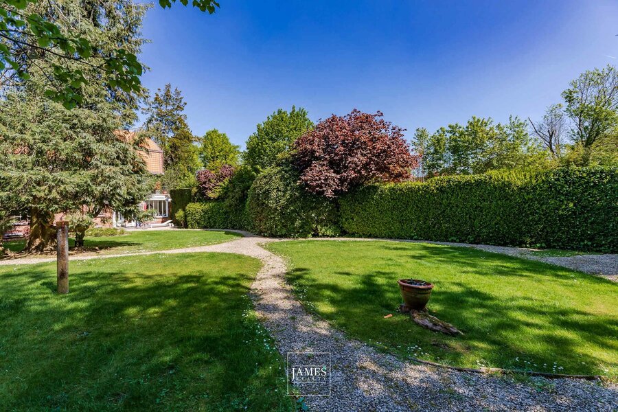 Deze charmante villa met karakter ligt in een van de mooiste straten van de wijk Vivier d'Oie, op een steenworp afstand van het Place Saint-Job, op een prachtig perceel van 15 are, op het zuiden gelegen en volledig uit het zicht.