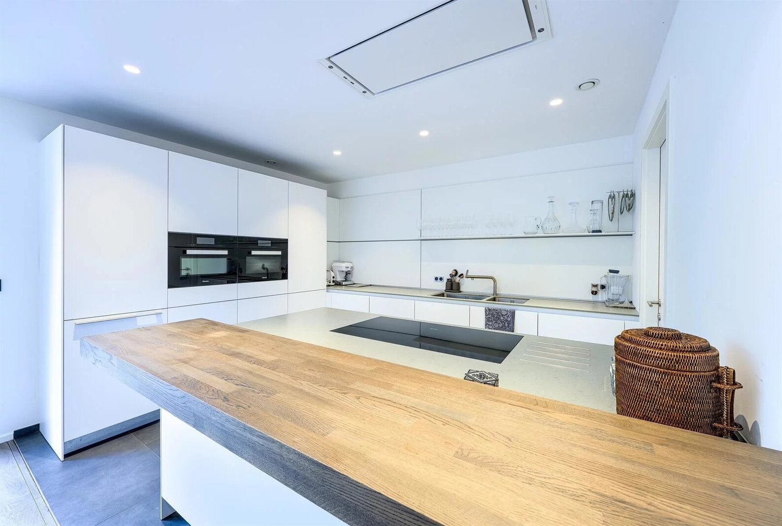 De leefruimte bestaat uit een grote, lichte woonkamer in twee delen, een eetkamer en een volledig uitgeruste open keuken. Een aparte wasruimte maakt deze ruimte compleet.