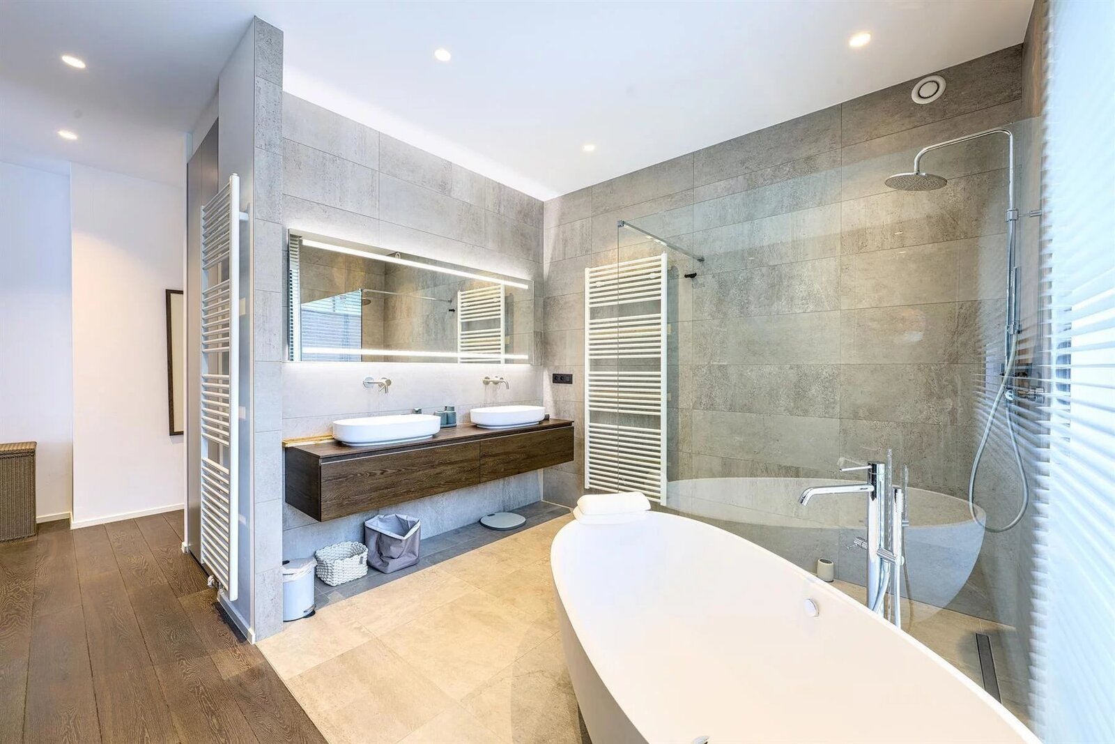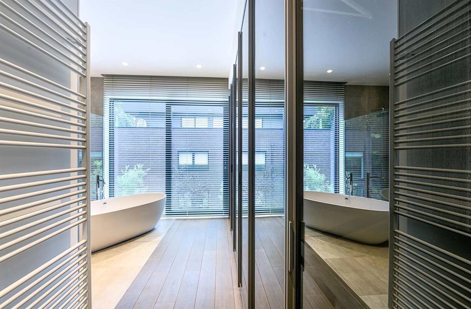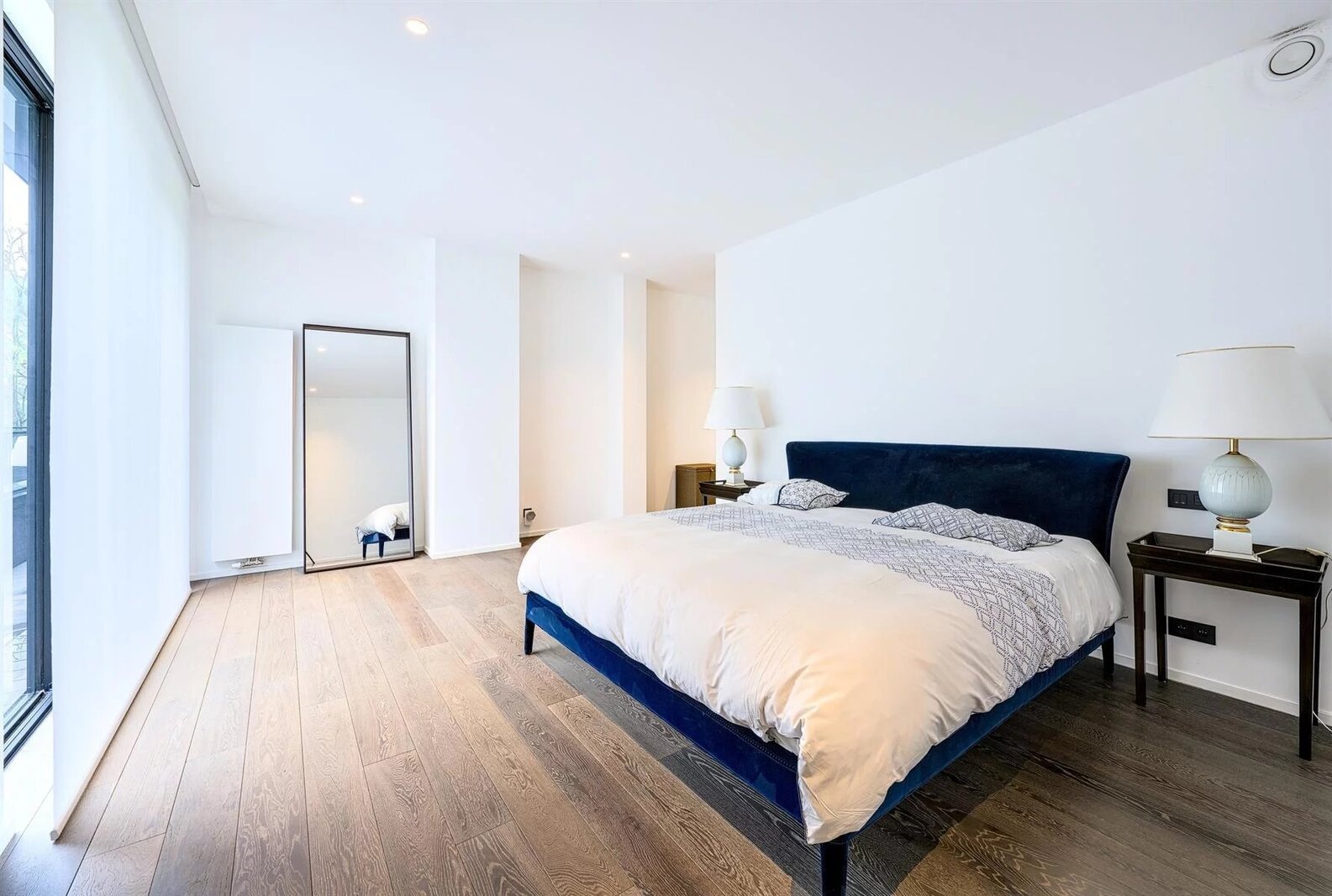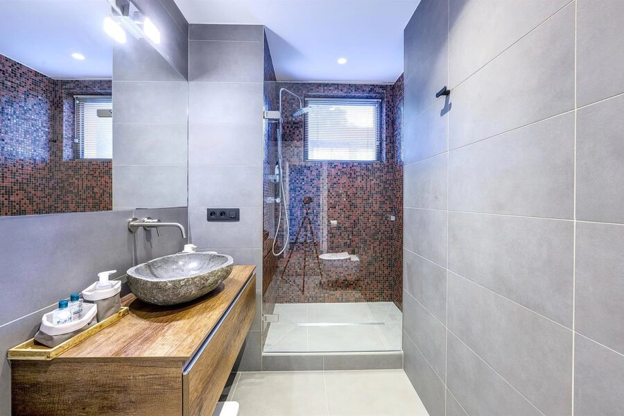 Het slaapgedeelte omvat een master suite met dressing en complete badkamer, evenals twee extra slaapkamers met eigen doucheruimtes.