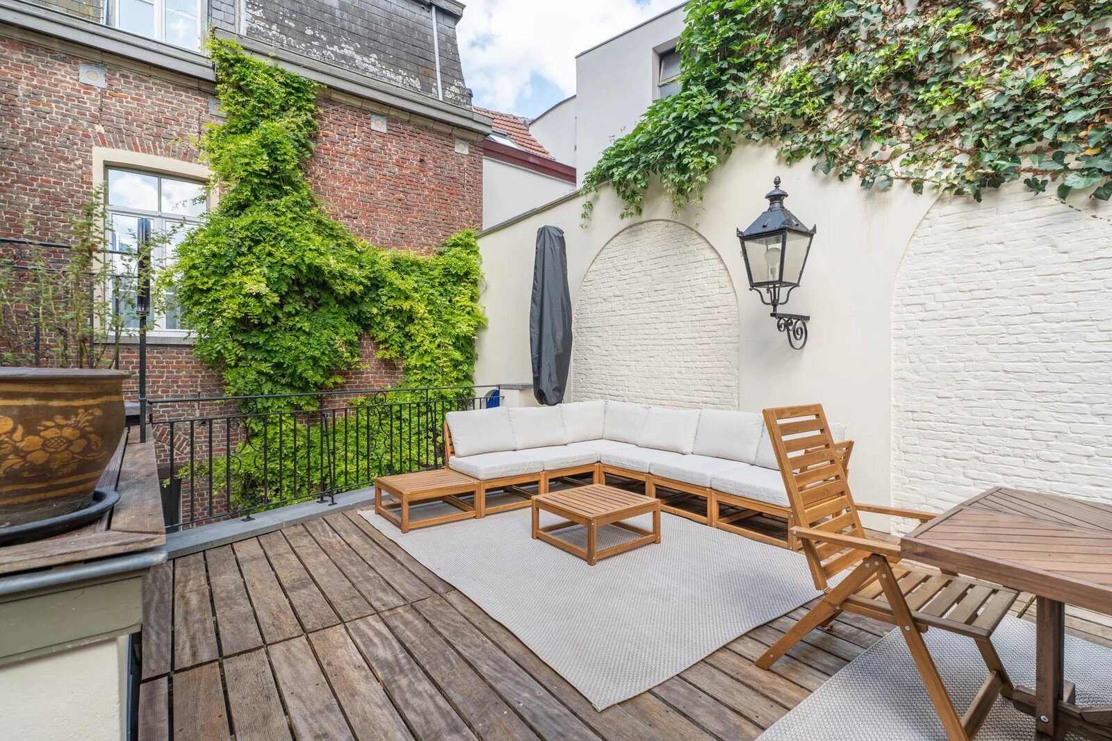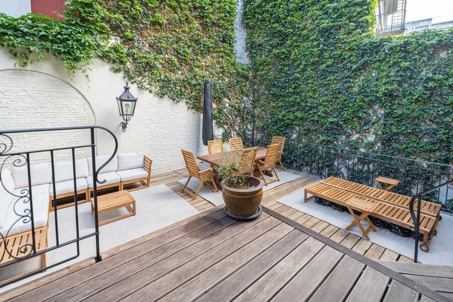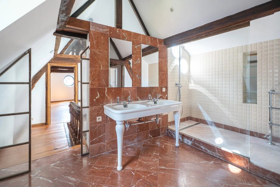 Victoire Junot heeft een exclusief aanbod voor een uitzonderlijk huis uit 1694, met 500 m² woonoppervlak, in de gewilde Sint-Katelijnewijk van Brussel. Deze zeldzame woning bestaat uit een ruime woonkamer van 60 m² met open haard, een tv-lounge van 15 m², een werkkamer van 15 m², een familiekamer van 40 m², een uitstekend uitgeruste keuken, een ingerichte wasruimte, vier slaapkamers (25, 22, 20 en 15 m²), waarvan twee zolderkamers, een dressing, een badkamer met bad en douche, twee extra doucheruimtes en vijf toiletten. Een groot terras van 50 m², alarminstallatie, intercom, videofoon, kelder, garage, dubbele beglazing en centrale verwarming op gas maken de voorzieningen compleet. Een onafhankelijk appartement met een slaapkamer, een extra doucheruimte, een toilet en een ingerichte keuken is ook inbegrepen.