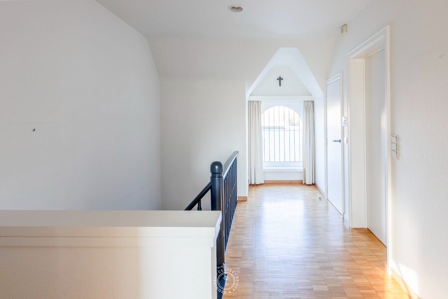 De woning beschikt over een ruime dubbele garage én een afzonderlijk thuiskantoor. Deze extra werkruimte / slaapkamer is perfect voor vrije beroepers, een praktijk, een inwonende ouder of wie structureel van thuis werkt. Dankzij de ligging geniet u hier bovendien van extra visibiliteit en een vlotte bereikbaarheid voor klanten — een absolute troef voor wie wonen en werken wil combineren.