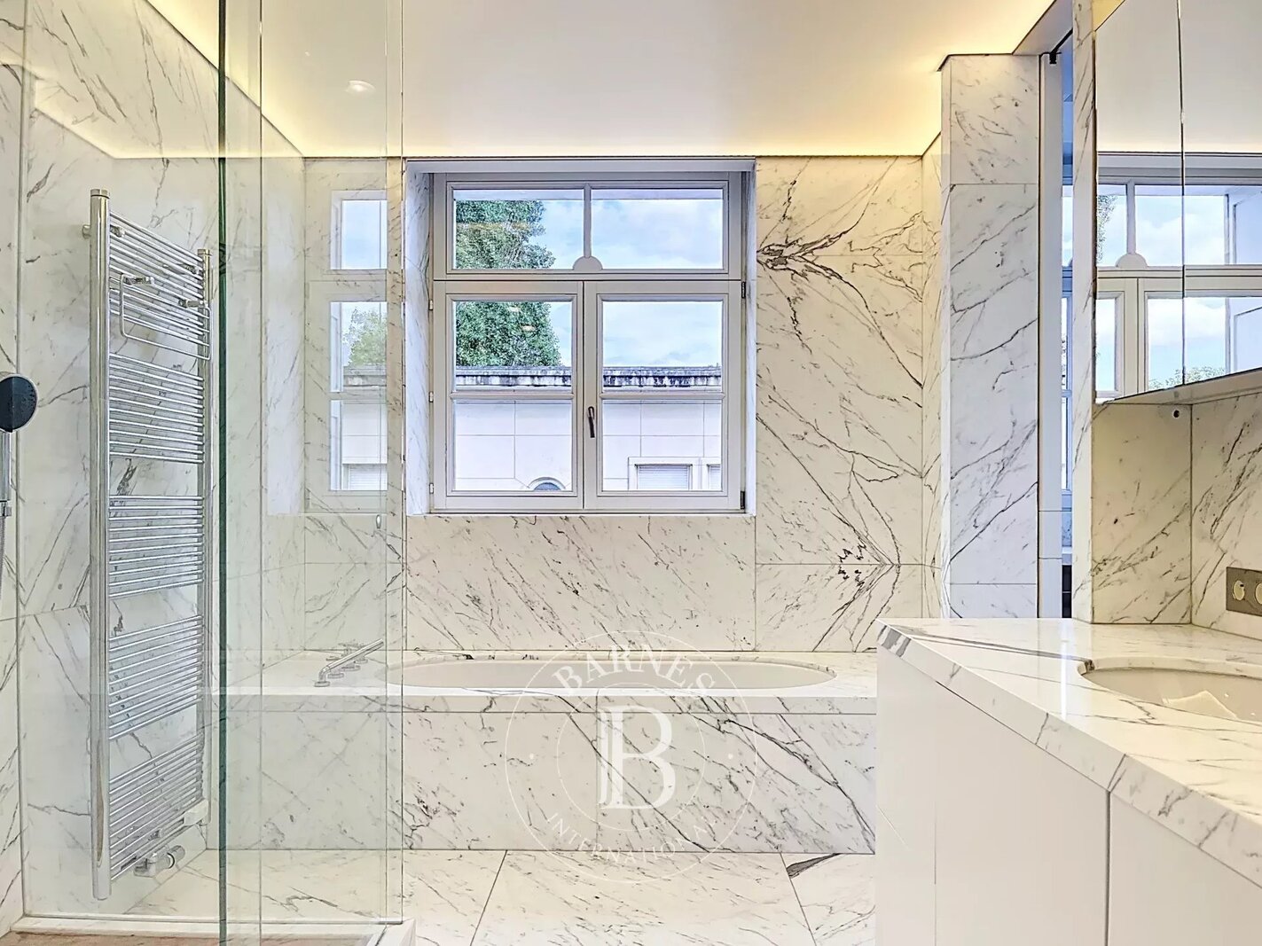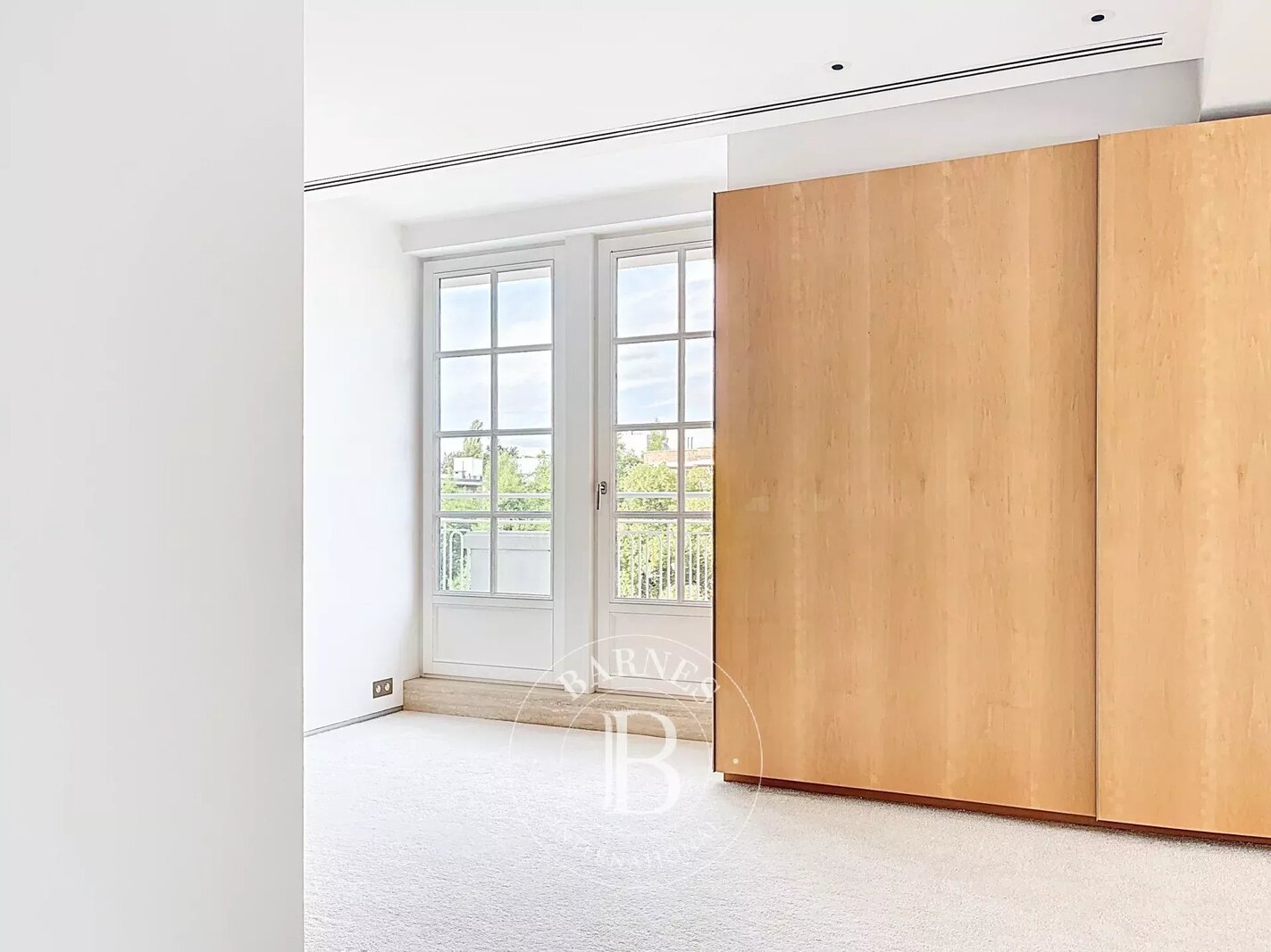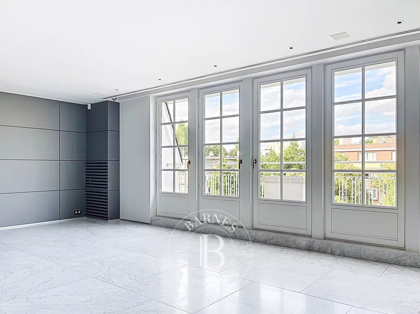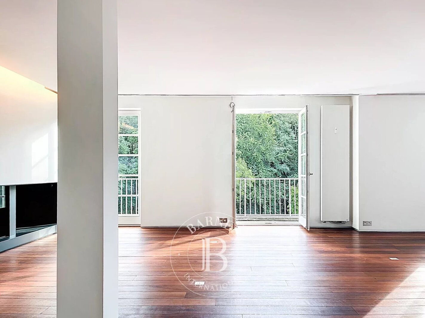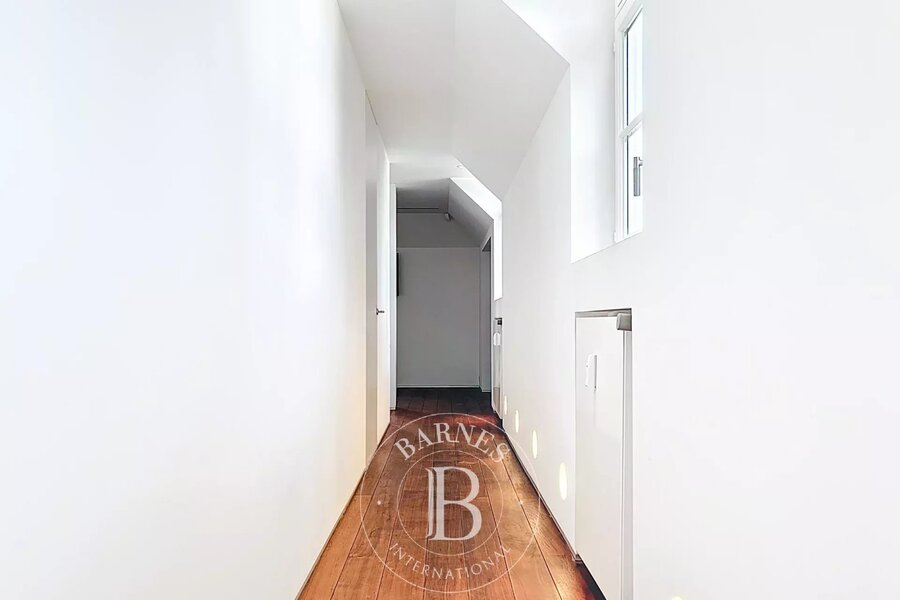 Op de bovenverdieping geeft een tweede woonkamer met aparte kitchenette toegang tot het tweede terras, dat een nog vrijer uitzicht biedt op de bomen in het Bois.