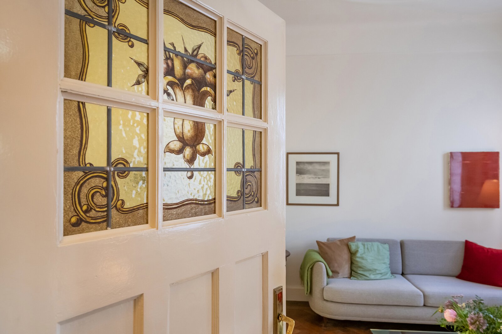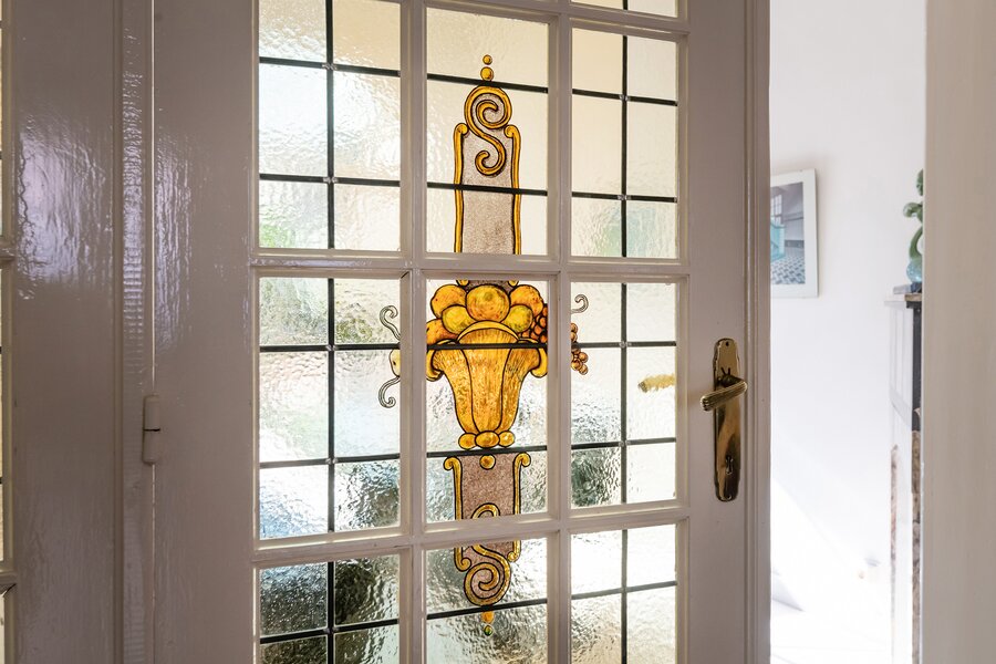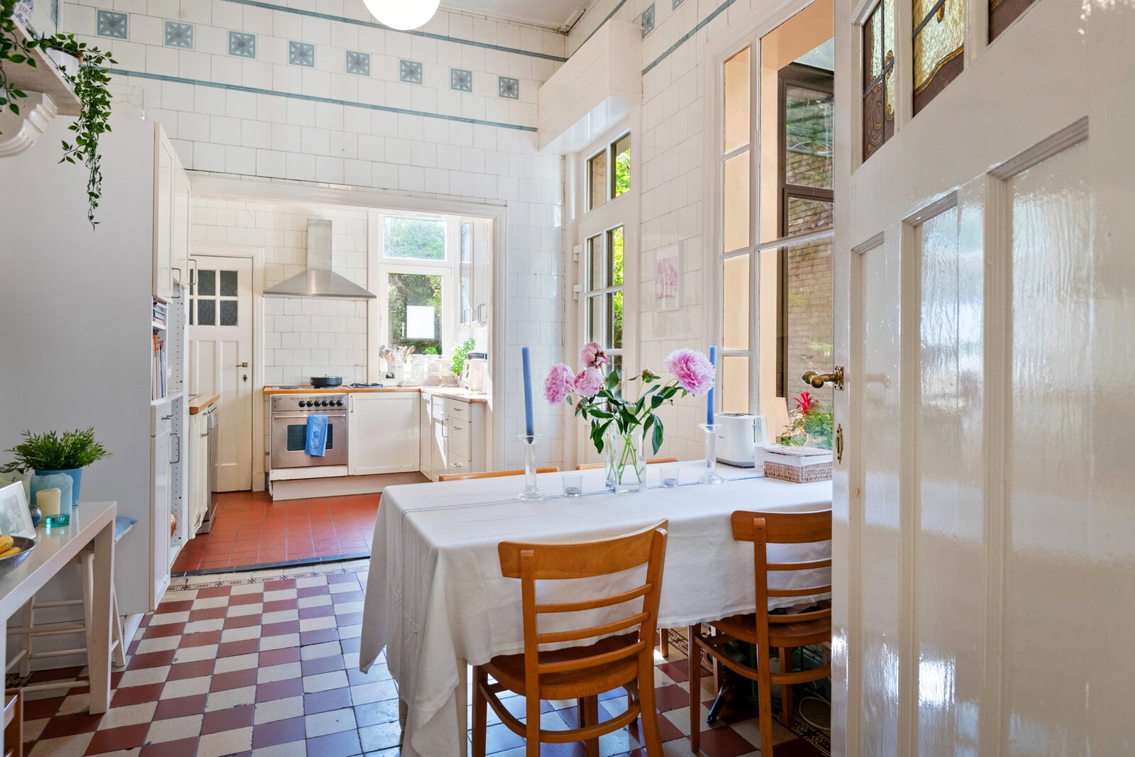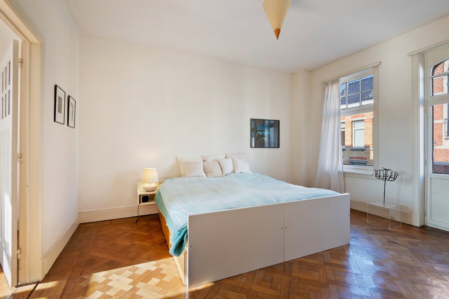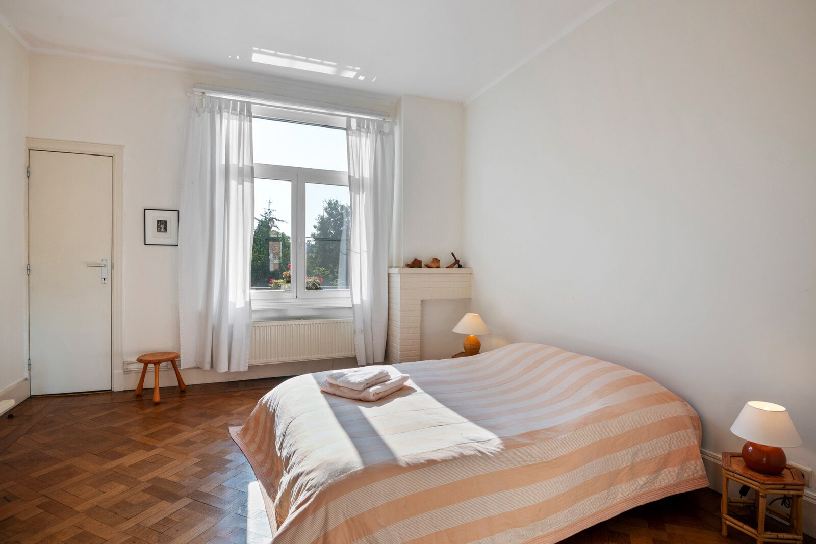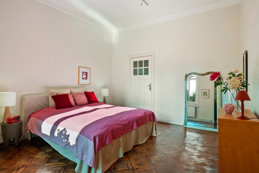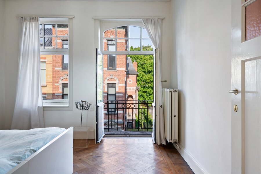 Deze mooie herenwoning in Beaux-Arts stijl is gelegen op een uitzonderlijke locatie aan de Velodroomstraat, parallel aan de prachtige Cogels-Osylei te Zurenborg. Hierdoor kijkt de intieme en zuidwest-georiënteerde stadstuin van 86 m² uit op de aangrenzende tuinen. De woning omvat 4 bouwlagen, telt 7 slaapkamers, 2 badkamers en een aparte douchekamer, en beschikt bovendien over een grote bruikbare kelderverdieping met wijnkelder van ca. 60 m². Het gelijkvloers is ingedeeld in drie opeenvolgende ruimtes die in elkaar overlopen: een sfeervolle leefruimte aan de voorzijde, gevolgd door een tweede tussenruimte en vervolgens een gezellige eetruimte achteraan. Deze eetruimte geeft uit op een charmante veranda die doorloopt naar de groene tuin. Ook is er vanuit de eetruimte directe toegang tot de keuken, die eveneens uitzicht biedt op het groen. Op de hogere verdiepingen bevinden zich de ruime slaapkamers en badkamers waarvan één met dressing of praktische bergruimte. En de derde verdieping is vergund om te verhuren als gezellige city-flat, met aparte condensatieketel, gas- en elektriciteitsmeters. De woning ademt karakter en geschiedenis, met een indrukwekkend interieur dat vanaf de inkomhal charmeert dankzij de dubbele klapdeur op marmeren vloer, originele glas-in-loodramen, koperen deurbeslag, bewaarde muur- en vloertegels en eiken parketvloeren tot en met de tweede verdieping. Aan de tuinkant zorgen gezellige terrassen per verdieping voor een mooi uitzicht op de omringende tuinen en torendaken van Zurenborg.