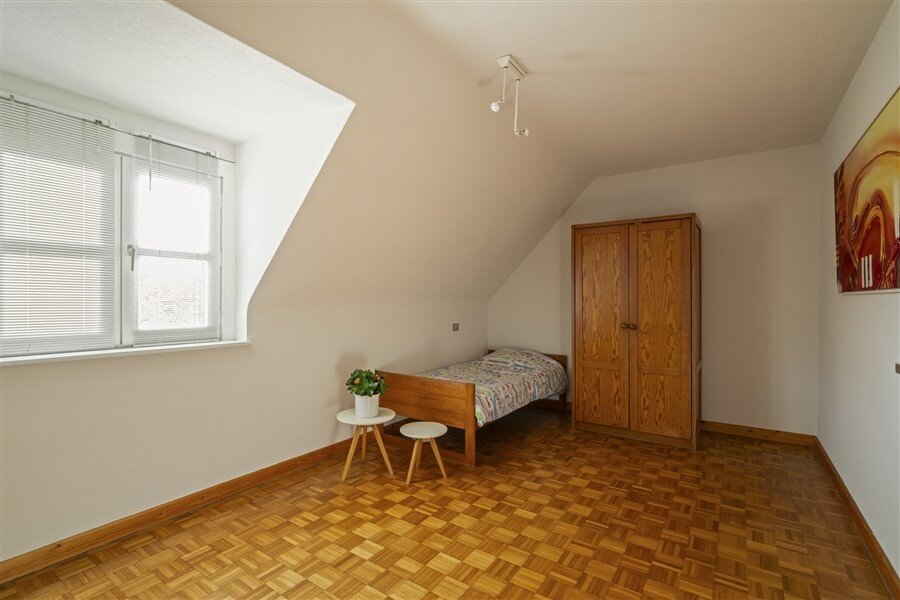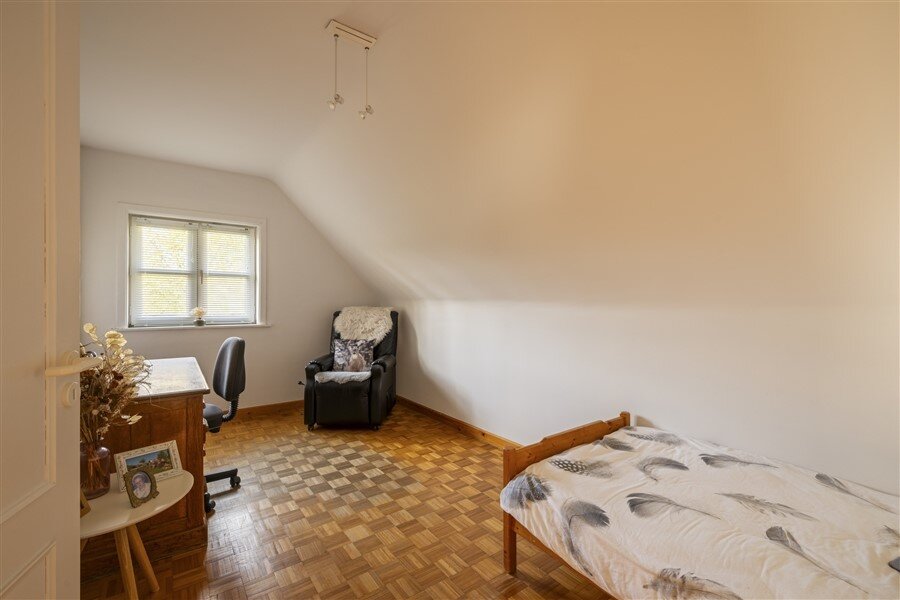Op de eerste verdieping: vier slaapkamers, elk met een eigen karakter en warm houten parket. De badkamer is ruim en ingericht met ligbad, douche, toilet en dubbele wastafel ( perfect om ochtendstress te vermijden) - Bureel.
