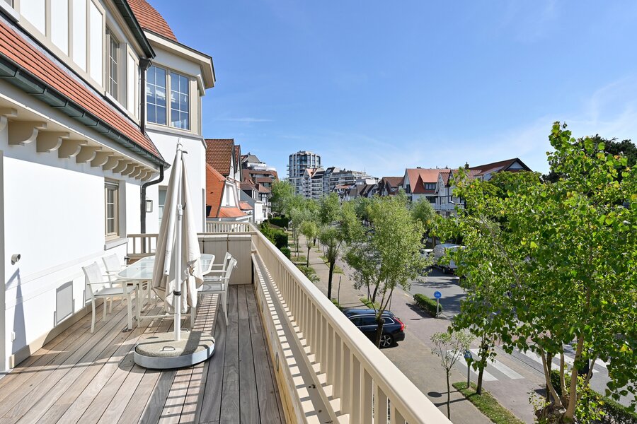 Prachtig hoekappartement in een elegante villaresidentie, centraal gelegen in het bruisende hart van het Zoute, op een steenworp afstand van het Albertplein...