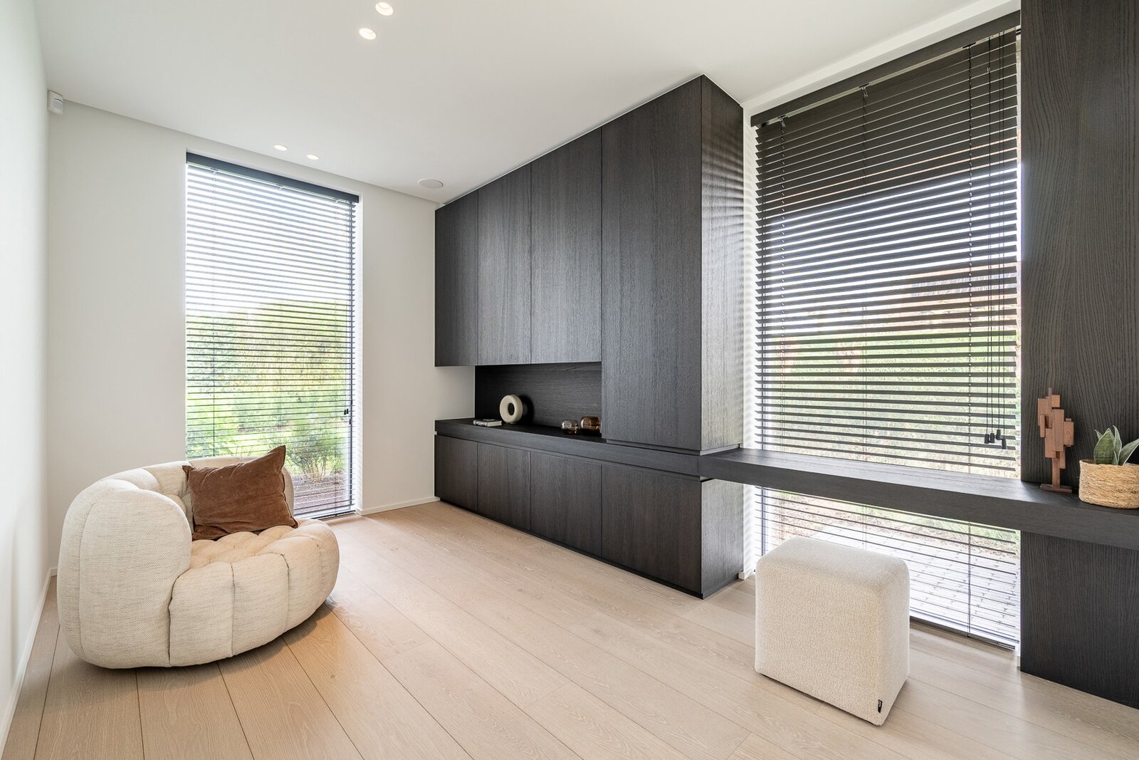 Aparte bureauruimte met ingemaakte kasten.