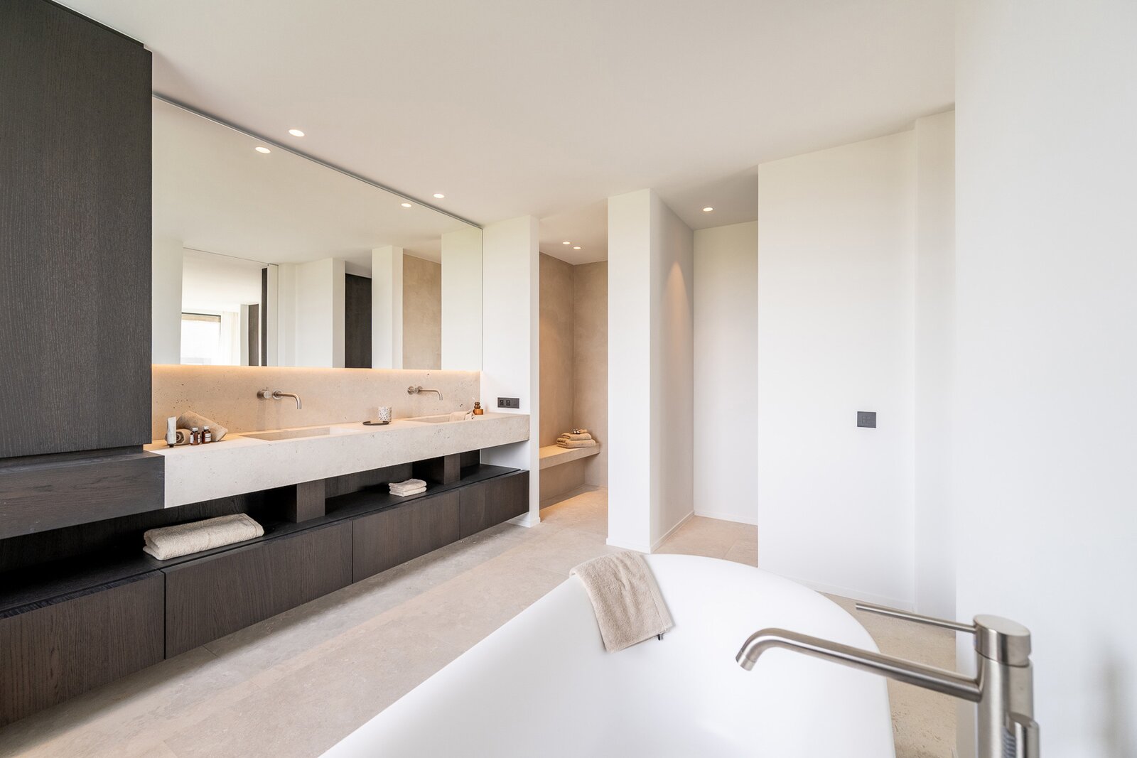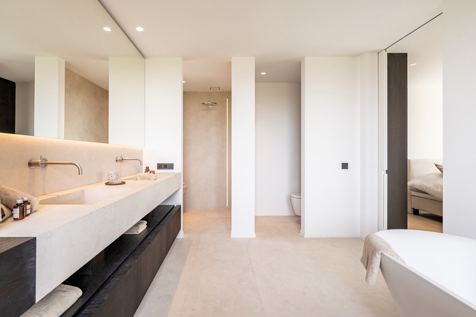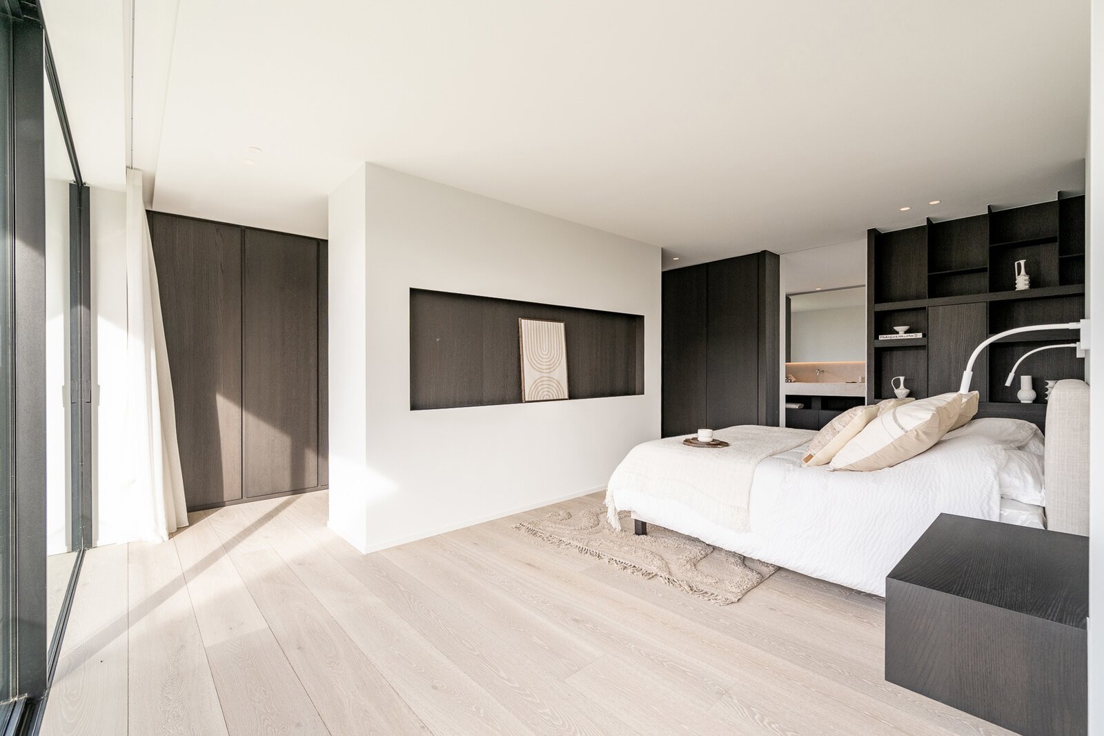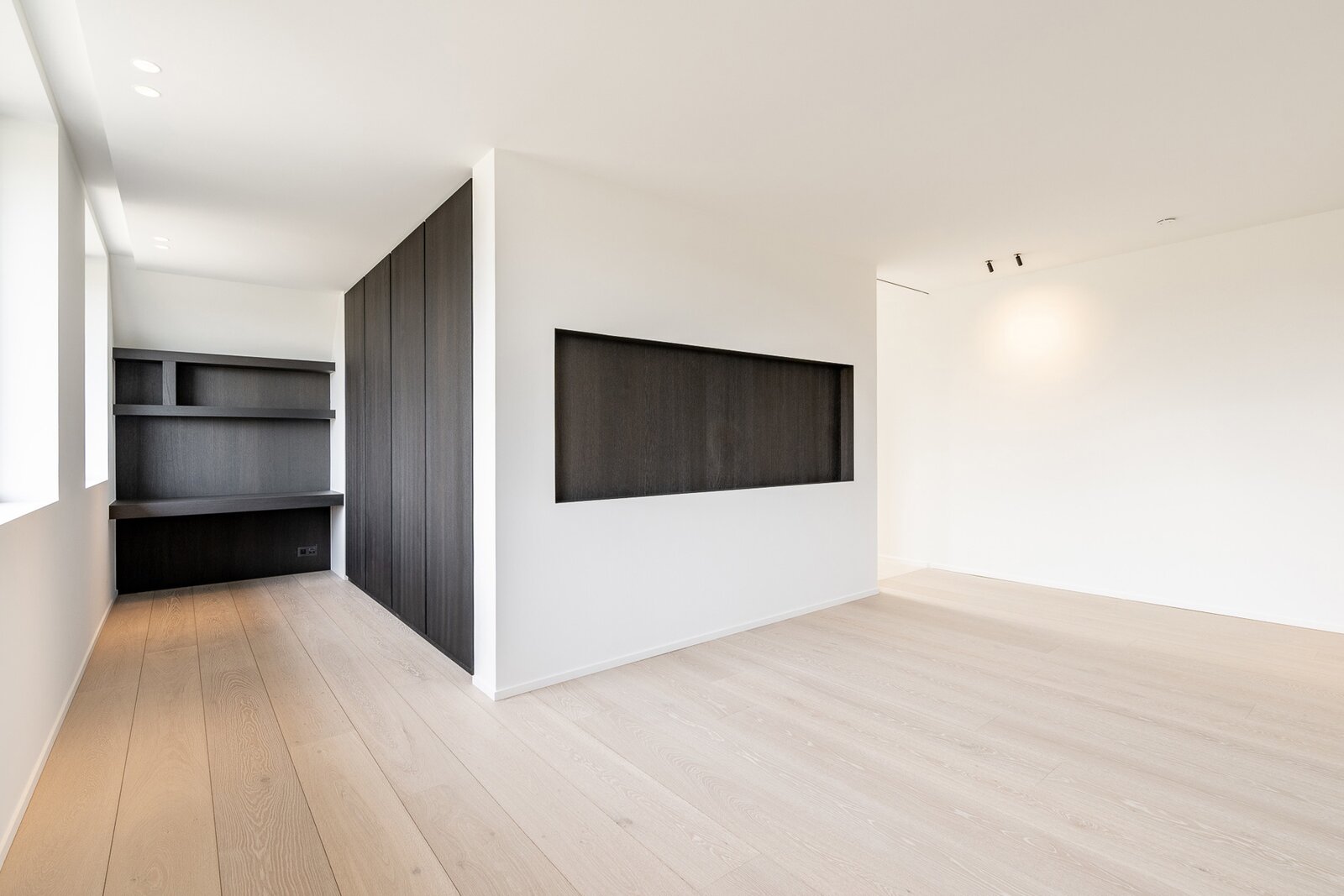 De open nachthal geeft toegang tot drie uitzonderlijk ruime slaapkamers. Elke slaapkamer beschikt over een eigen dressing en een luxueus afgewerkte ensuite badkamer, wat zorgt voor optimaal comfort.