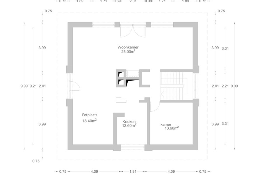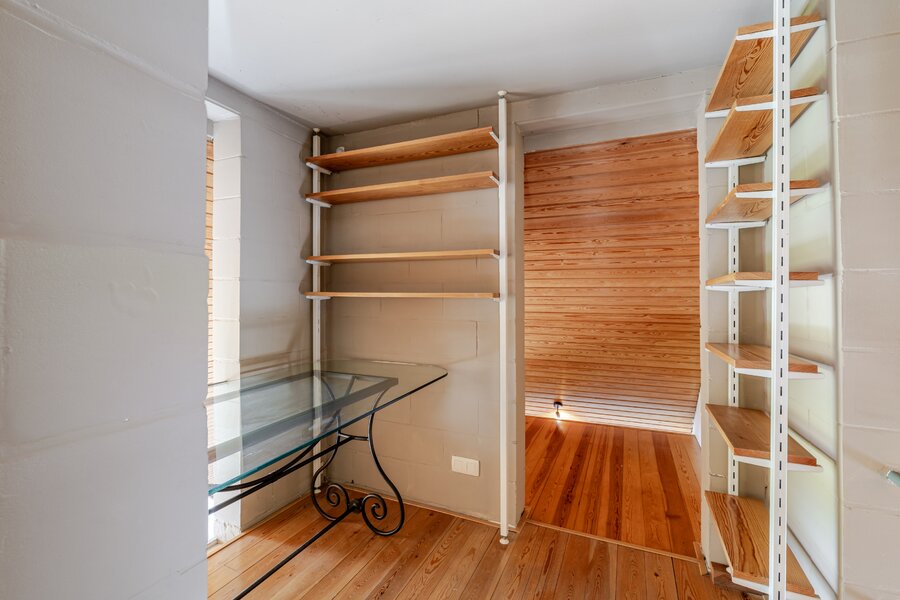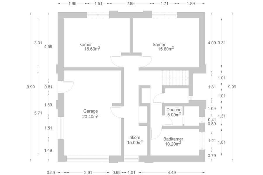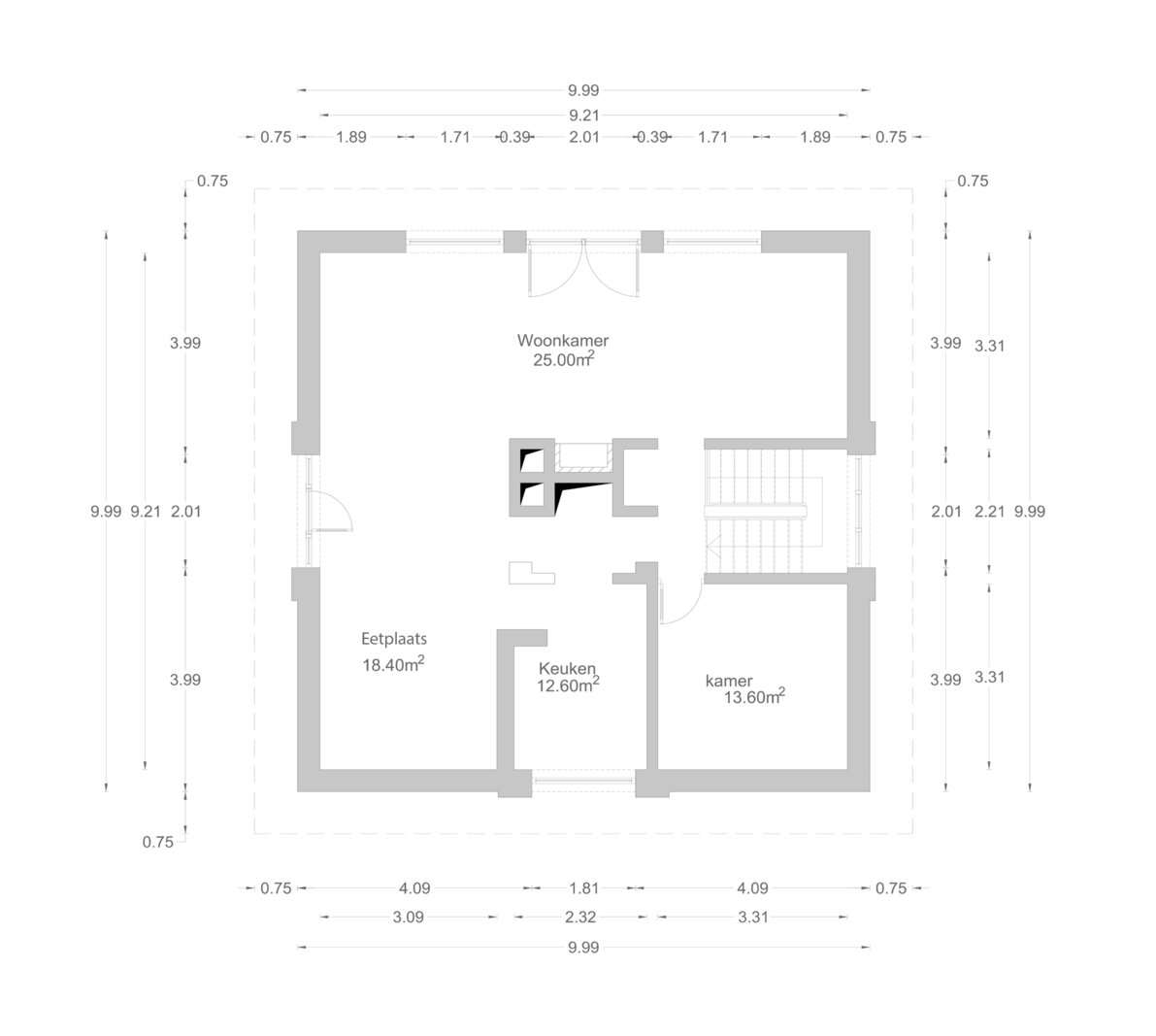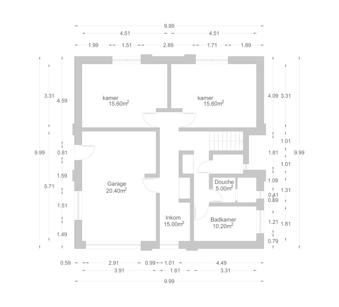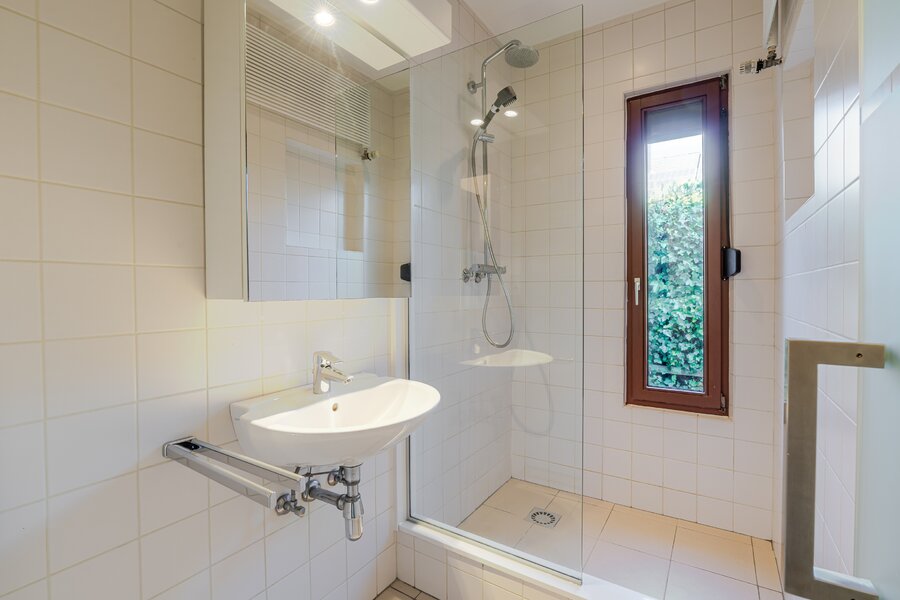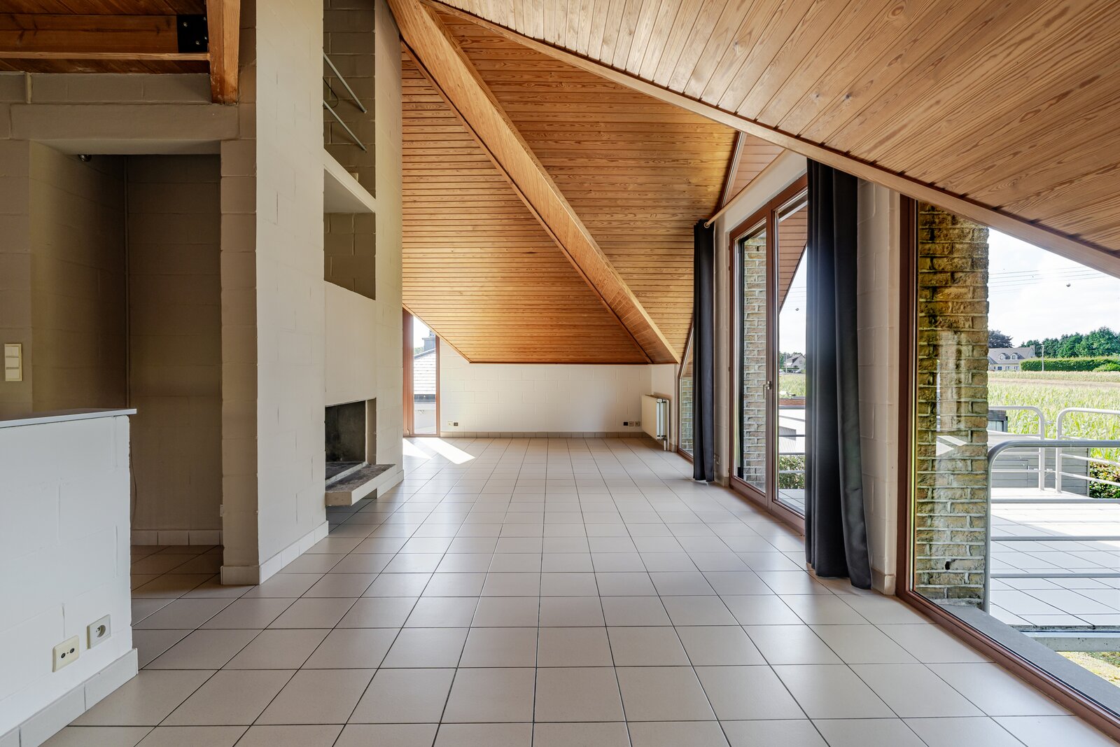 De woning is voorzien van een ruime inpandige garage, 2 ruime slaapkamers met ingemaakte kasten met toegang tot de tuin, een ruime badkamer én een aparte douchekamer. Nemen we de trap naar boven, vinden we een ruime slaapkamer en een hele mooie en hoge open ruimte terug als woonkamer, eetkamer en keuken. De woonkamer verschaft een prachtig zicht op de tuin en de achterliggende velden. In alle rust. De mezzanine doet dienst als bureauruimte, ideaal voor thuiswerkers.