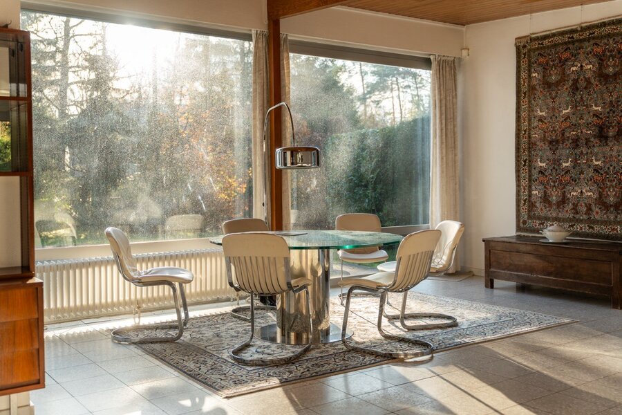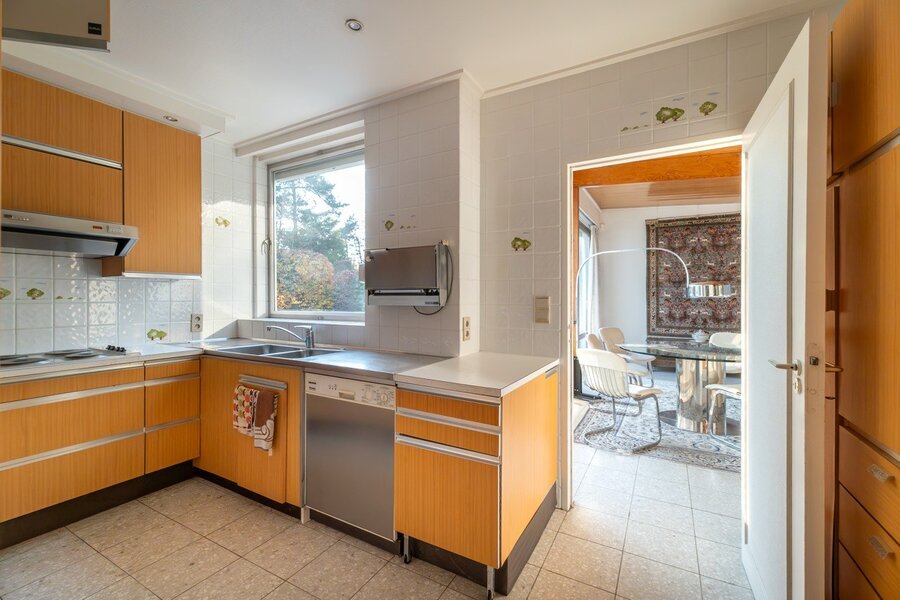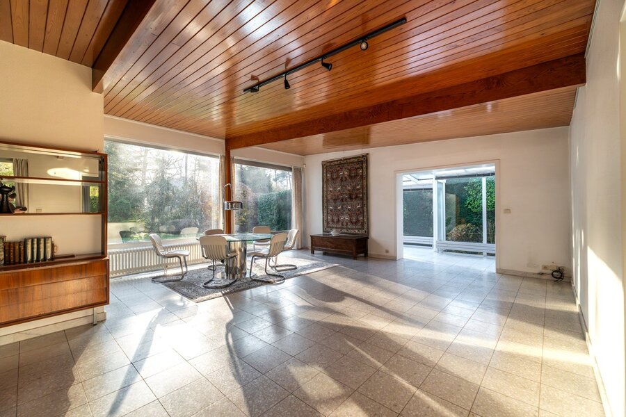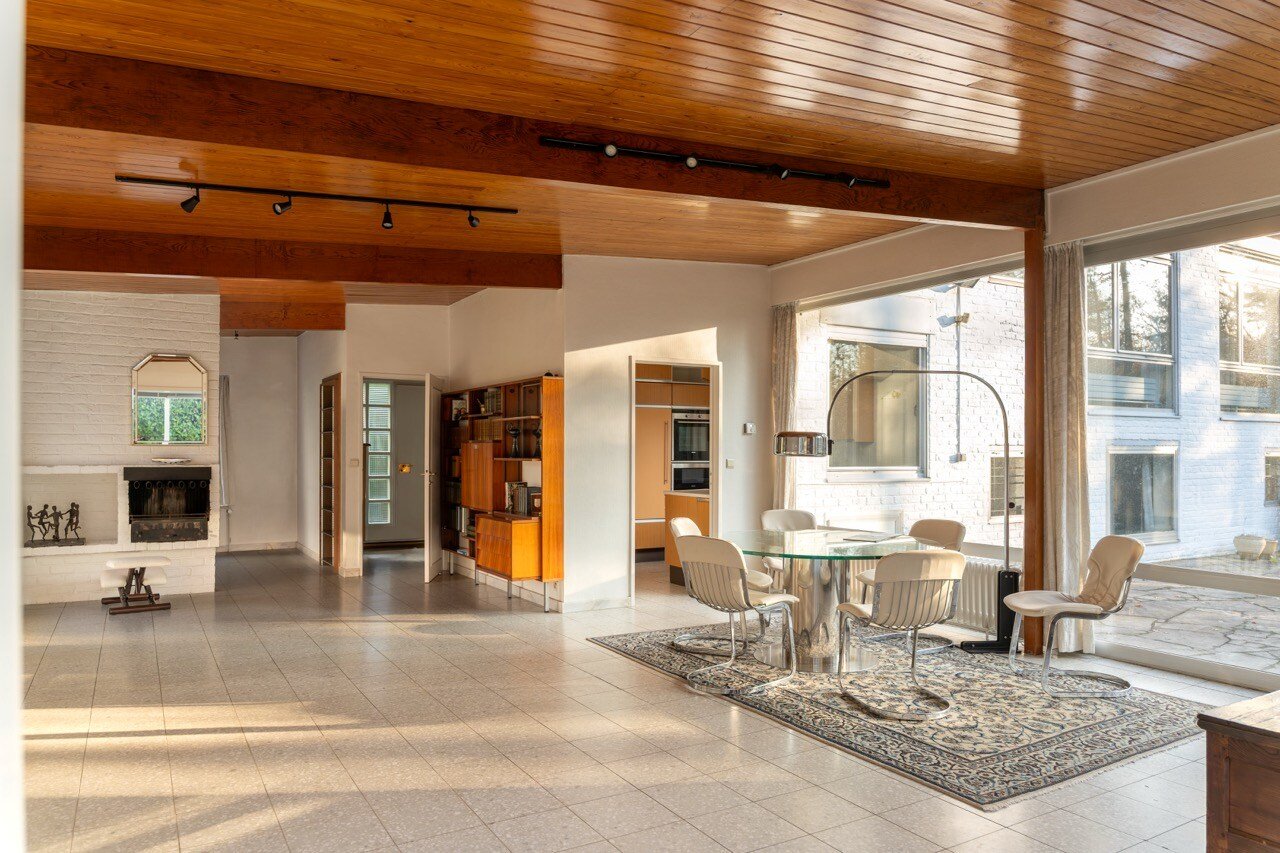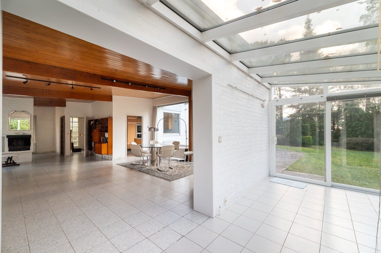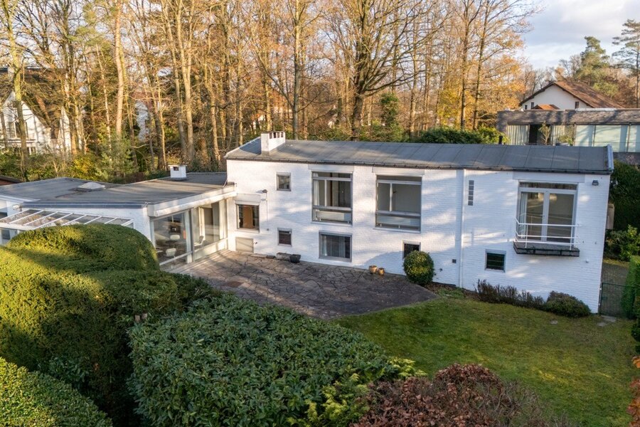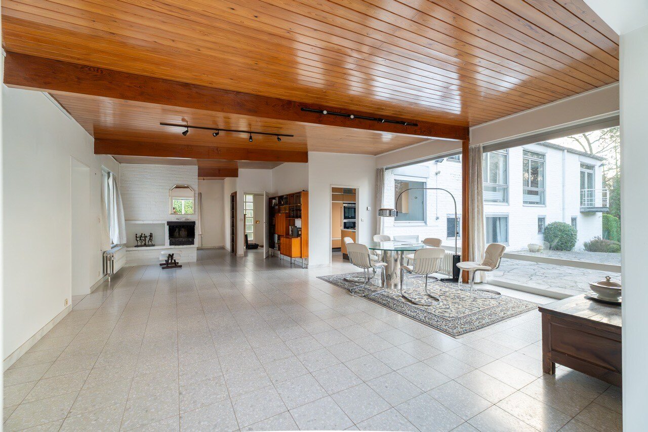 In het hart van de gegeerde wijk Prince d’Orange in Ukkel bevindt zich deze villa (±300 m² volgens EPC), ontworpen door architect Jean Van Coppenolle eind jaren vijftig. Grote raampartijen zorgen voor een harmonieuze verbinding tussen binnen en buiten. Gelegen op een bebost perceel van ±15 are, georiënteerd naar het noordoosten, vraagt de woning om een opfrissing.