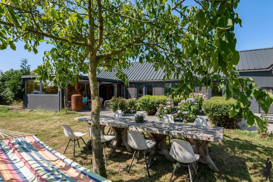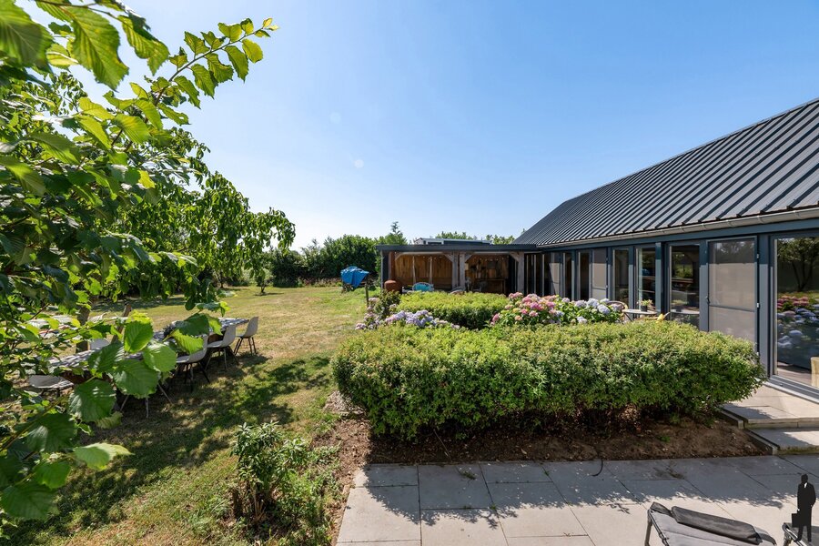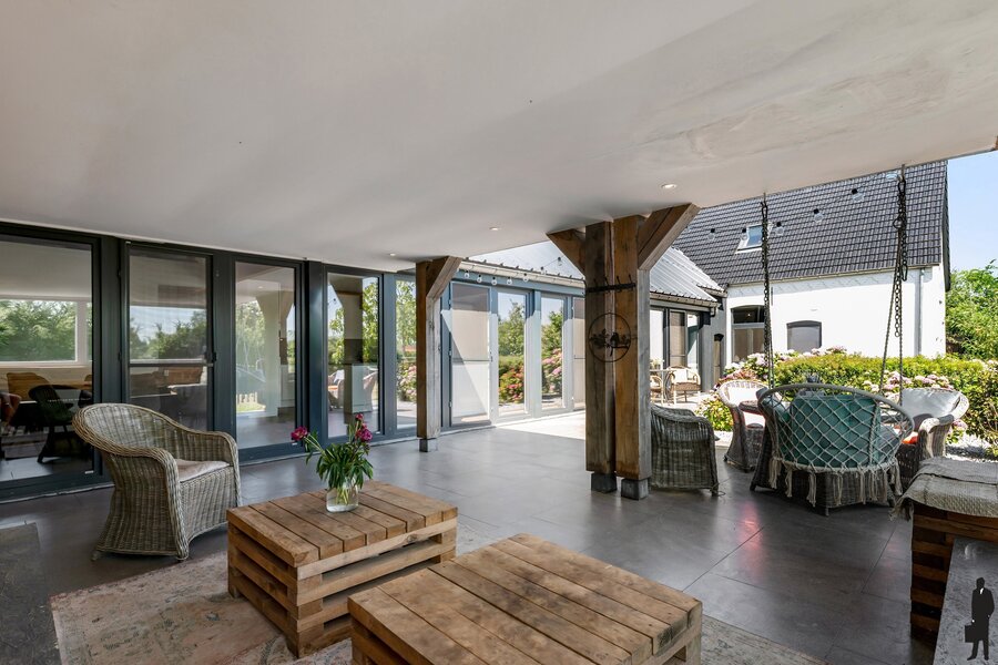 De woning is omgeven door uitgestrekte weilanden, ideaal voor dierenliefhebbers of wie droomt van ruimte en vrijheid. De landelijke ligging garandeert rust en privacy, terwijl voorzieningen en verbindingswegen vlot bereikbaar zijn. Deze karaktervolle hoeve werd met oog voor detail en respect voor het verleden gerenoveerd, met gebruik van authentieke en duurzame materialen die het landelijke karakter volledig tot zijn recht laten komen.