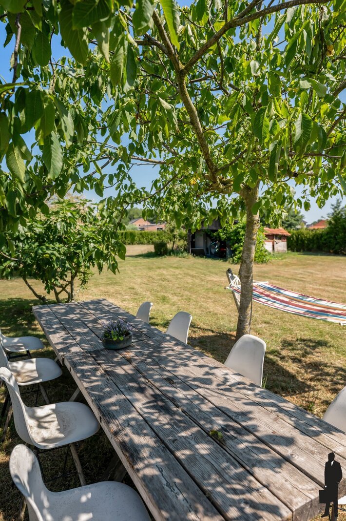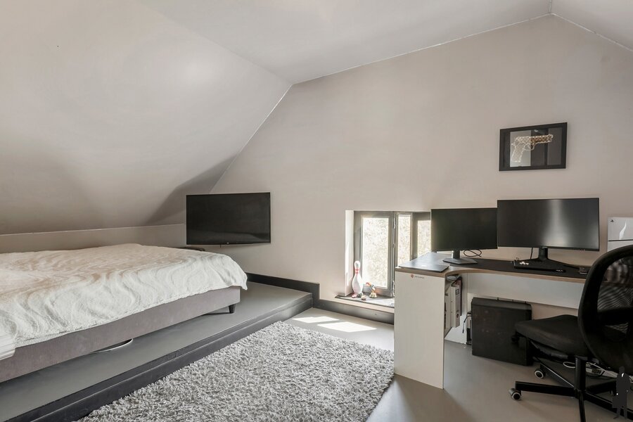Indeling: lichtrijke inkomhal, gezellige eethoek met overdekt terras, open keuken, ruime zithoek met zicht op de tuin, masterbedroom met dressing en ensuite douchekamer) een slaapkamer met dressing en een aparte badkamer met bad, wasplaats. Bovenverdieping met 3 slaapkamers en een ruime overloop. Omringd door natuur en rust – ideaal voor dierenliefhebbers of wie houdt van ruimte en stilte.