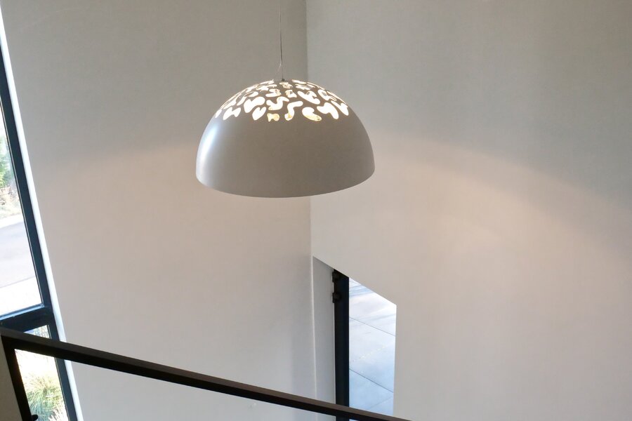 Gelijkvloers: Ruime inkomhal met gastentoilet. Lichtrijke leefruimte met open keuken die aansluit op het zonnige terras en de tuin. Daarnaast bevindt zich hier een eerste slaapkamer met douchekamer en een handige bergruimte.