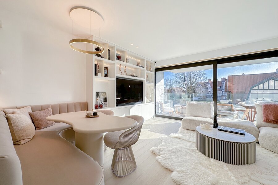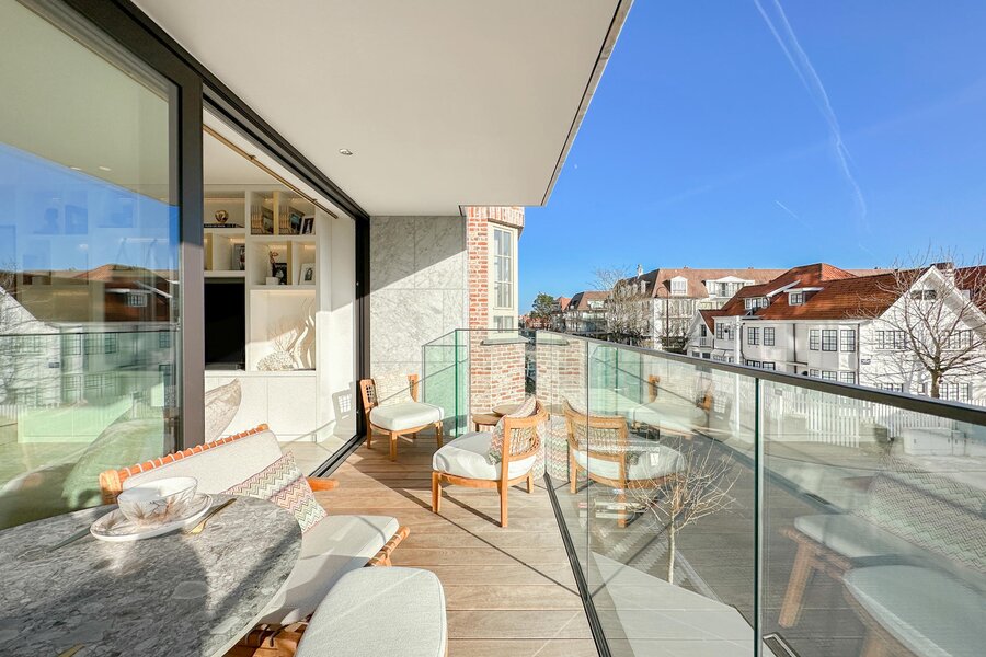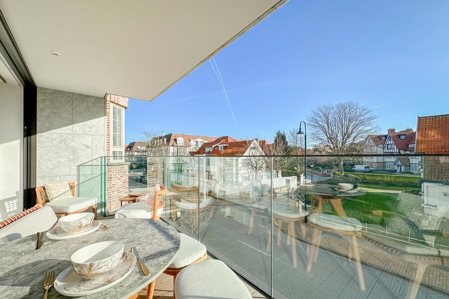 Subliem afgewerkt nieuwbouwappartement in het Zoute met zonnig terras en zicht op de villa's...