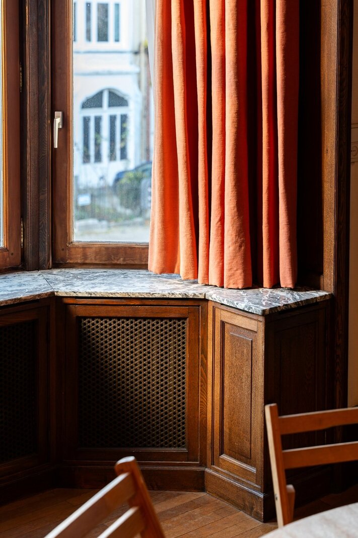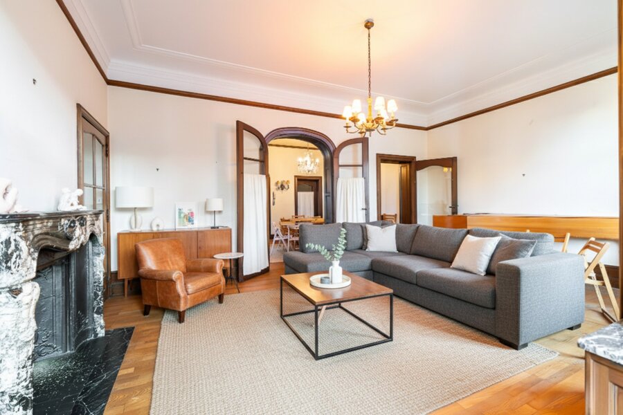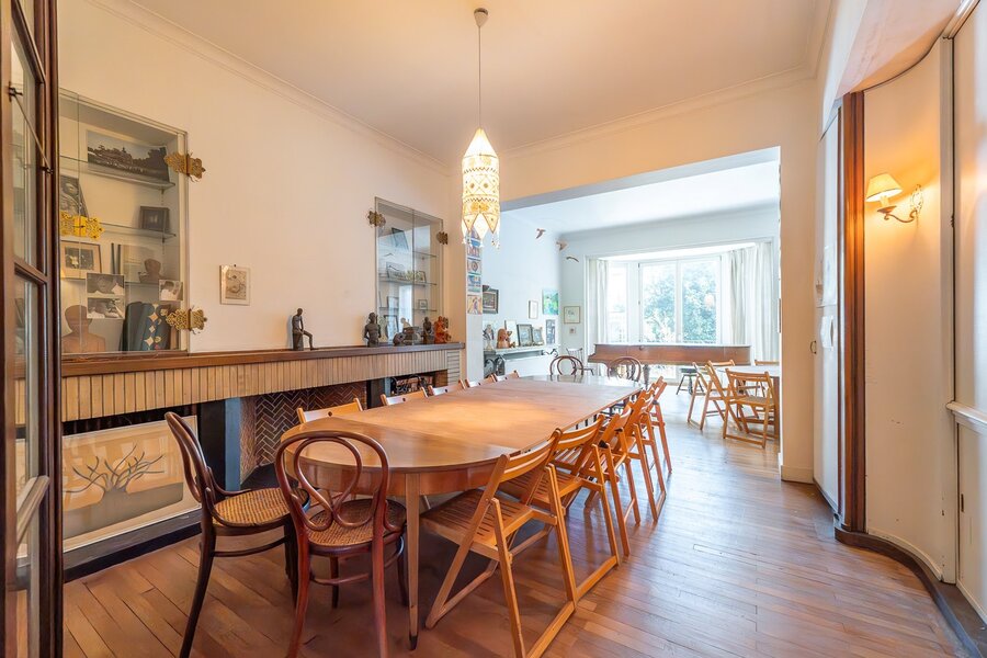 Op een steenworp van het Brugmannplein, aan de rand van Elsene, elegante burgerwoning ontworpen door L. Boghoms in 1915, met een bewoonbare oppervlakte van ± 440 m² (± 510 m² bebouwd) op een perceel van 2 a 65 ca met oostelijke oriëntatie. Brede gevel van 7 m, vijf slaapkamers en drie badkamers.
