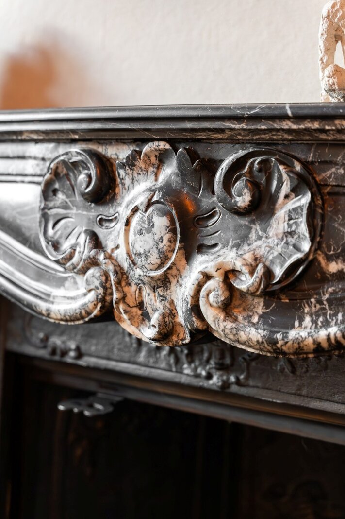 Op de eerste verdieping: centrale hal, hoofdwoonkamer met terras aan de tuinzijde, tweede salon met open haard en een dienstkamer.