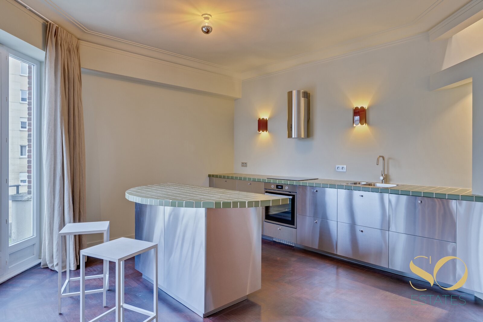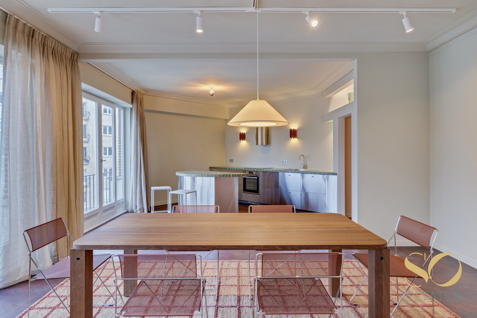 In een gegeerde wijk van Elsene, tussen de ULB en het Ter Kamerenbos, werd dit lichtrijke appartement van 131m² volledig gerenoveerd en ingericht door een architect, met bijzondere aandacht voor volumes en een vloeiende circulatie. De lichtrijke en ruime leefruimte verbindt salon en eetkamer, terwijl de hedendaagse keuken, ontworpen als volwaardige leefruimte, functionaliteit combineert met een sobere esthetiek. Het nachtgedeelte met twee aparte slaapkamers en en suite badkamer, biedt rust en comfort, met geïntegreerde maatkasten. Ondergrondse parkeerplaats optioneel: €40.000. Volledig en grondig gerenoveerd in 2026. Vloerverwarming. EPC: C-. Elektriciteit conform. Een instapklaar appartement, licht en harmonieus ingedeeld, in een gegeerde omgeving.