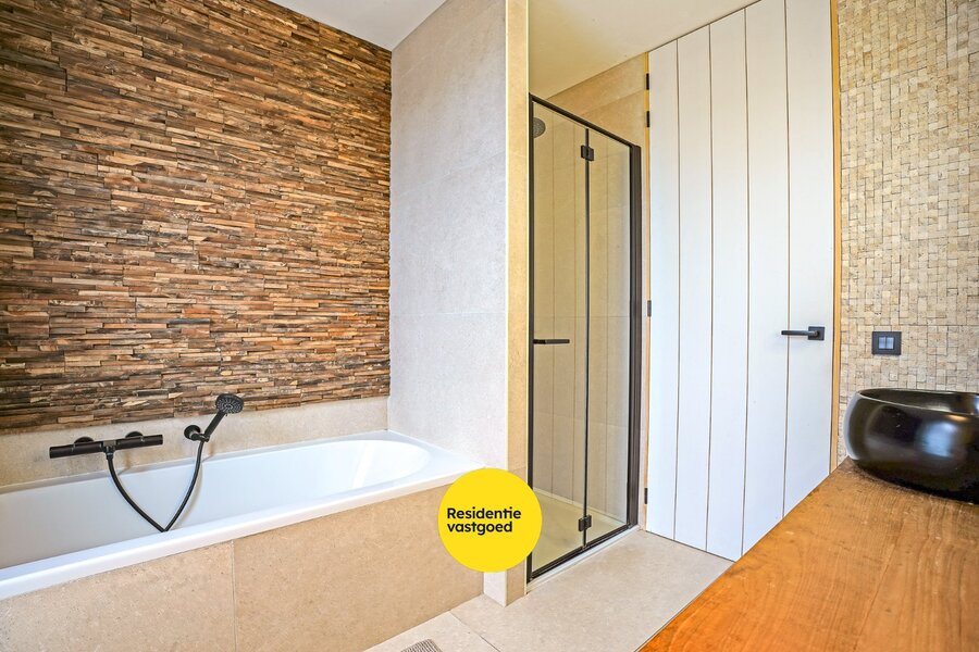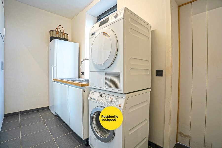 Bij het betreden van de woning kom je terecht in een aangename inkomhal met apart gastentoilet en vestiaire. De luxueus afgewerkte open keuken is uitgerust met alle hedendaagse comfort en sluit naadloos aan op de lichtrijke leefruimte. Dankzij de grote raampartijen geniet je hier van prachtige, open zichten die het buitengevoel moeiteloos naar binnen brengen. De praktische garage combineert een berg- en wasruimte en beschikt over aansluitingen voor wasmachine en droogkast. Op de eerste verdieping bevindt zich de master bedroom met eigen dressing en en-suite badkamer. Daarnaast zijn er nog twee volwaardige slaapkamers, een tweede badkamer en een apart toilet. De tweede verdieping biedt plaats aan twee ruime kamers die perfect kunnen ingericht worden als extra slaapkamers, bureau of hobbyruimte.
