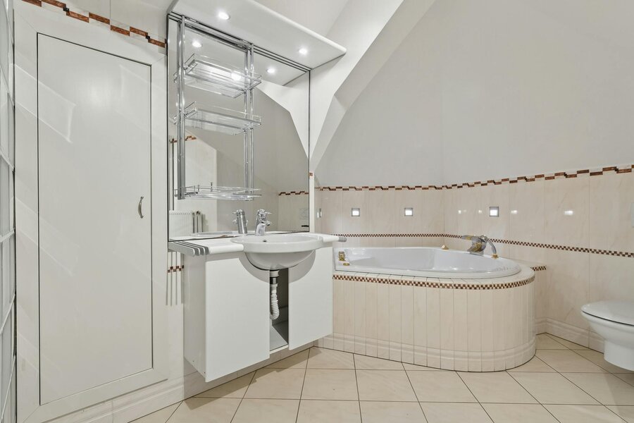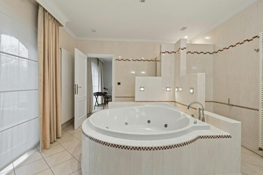 De villa is volledig gerenoveerd in 2007 en biedt een bewoonbare oppervlakte van maar liefst 475 m². De woning beschikt over een massief parket in de leefruimtes en slaapkamers, 6 slaapkamers (waarvan 3 master bedrooms) en 5 badkamers, waarvan 2 met jacuzzi. Geniet van de rust met een saunacabine en een surround sound systeem.