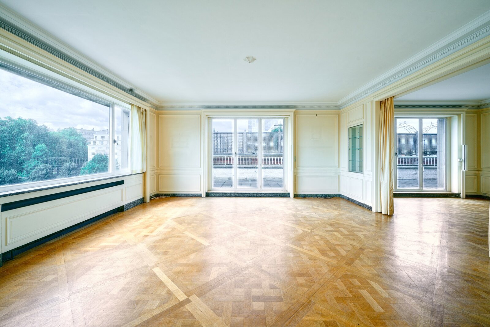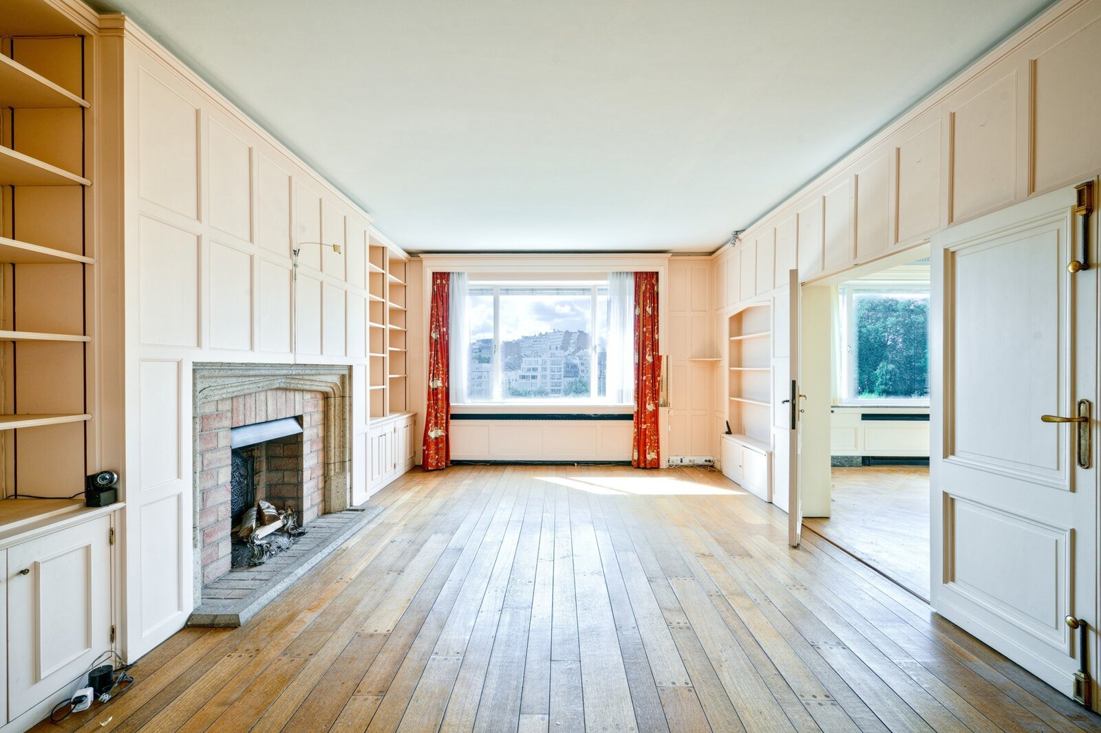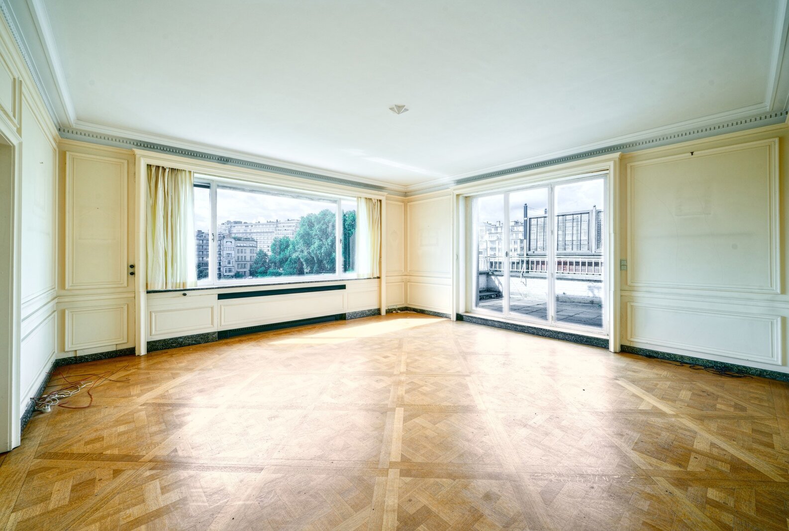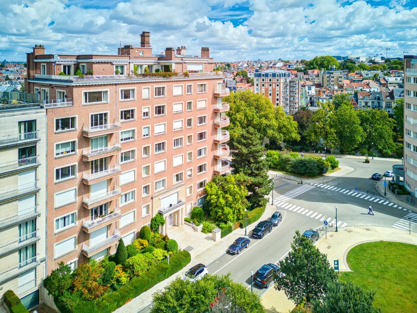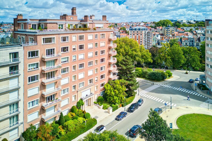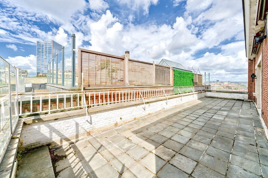 In een van de meest elegante gebouwen van Elsene, aan de rand van de Jardin du Roy, op de 7e verdieping met groot terras van +/- 50 m², prachtig appartement van +/- 275 m² met een buitengewoon uitzicht en een perfecte zuidligging. Mooie ontvangstruimtes, ingerichte keuken, 3 slaapkamers, 2 badkamers. Kelder, wijnkelder. Garage. EPC F