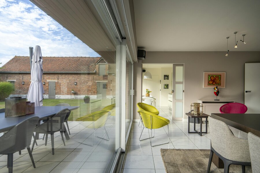 Gelegen tussen Avelgem en Kluisbergen, combineert deze woning een goeie bereikbaarheid met de rust van het platteland.
