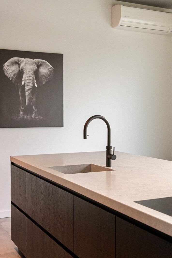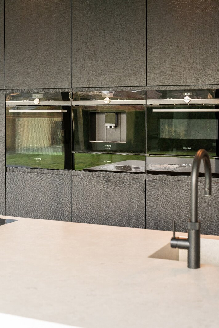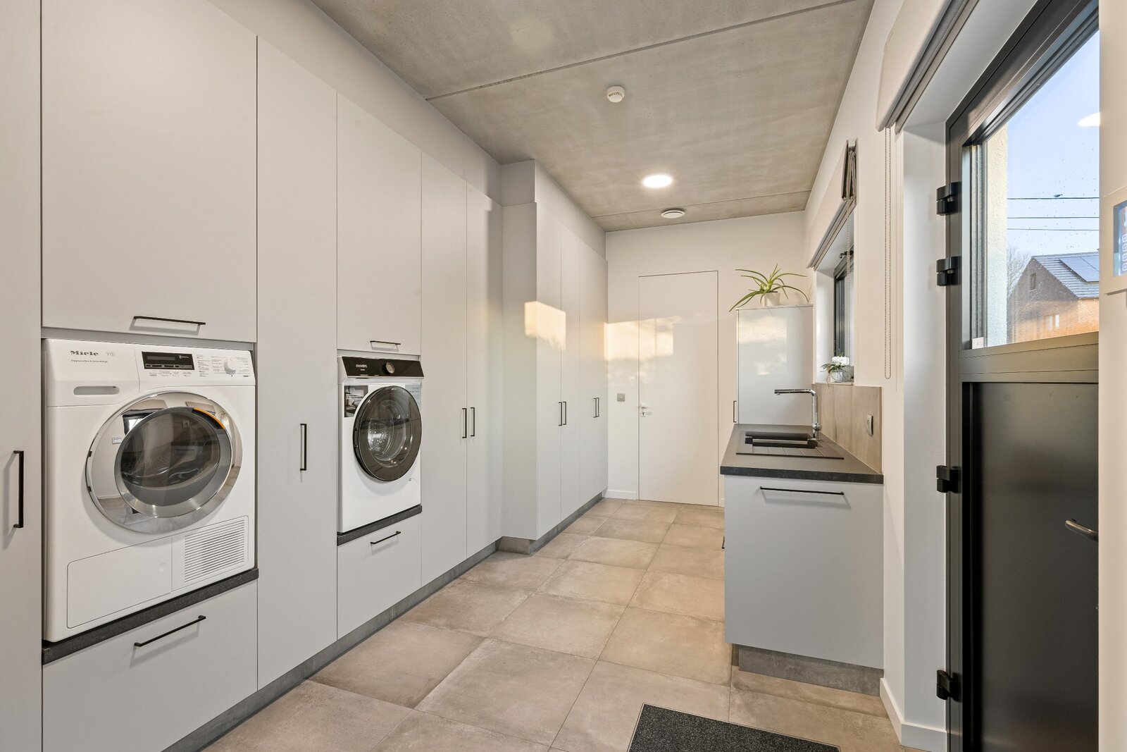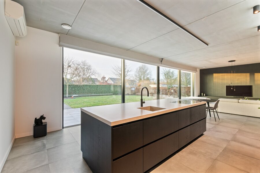 Via de centrale inkomhal met gastentoilet betreedt u de woning. Van hieruit komt u in het open en lichtrijke leefgedeelte, bestaande uit een gezellige zithoek, eetplaats en een volledig ingerichte open keuken. Dankzij de plafondhoge raampartijen geniet u hier van een overvloed aan natuurlijk licht en een mooi zicht op de fraai aangelegde tuin. De keuken is voorzien van alle moderne toestellen, waaronder een vaatwasser, koelkast, diepvries, oven, microgolfoven, koffiezetapparaat, twee warmhoudlades, een inductiekookplaat met geïntegreerde afzuiging en een spoelbak met Quooker-kraan. Aansluitend bevindt zich een praktische berging/wasplaats met extra koelkast en diepvries, evenals aansluiting voor wasmachine.