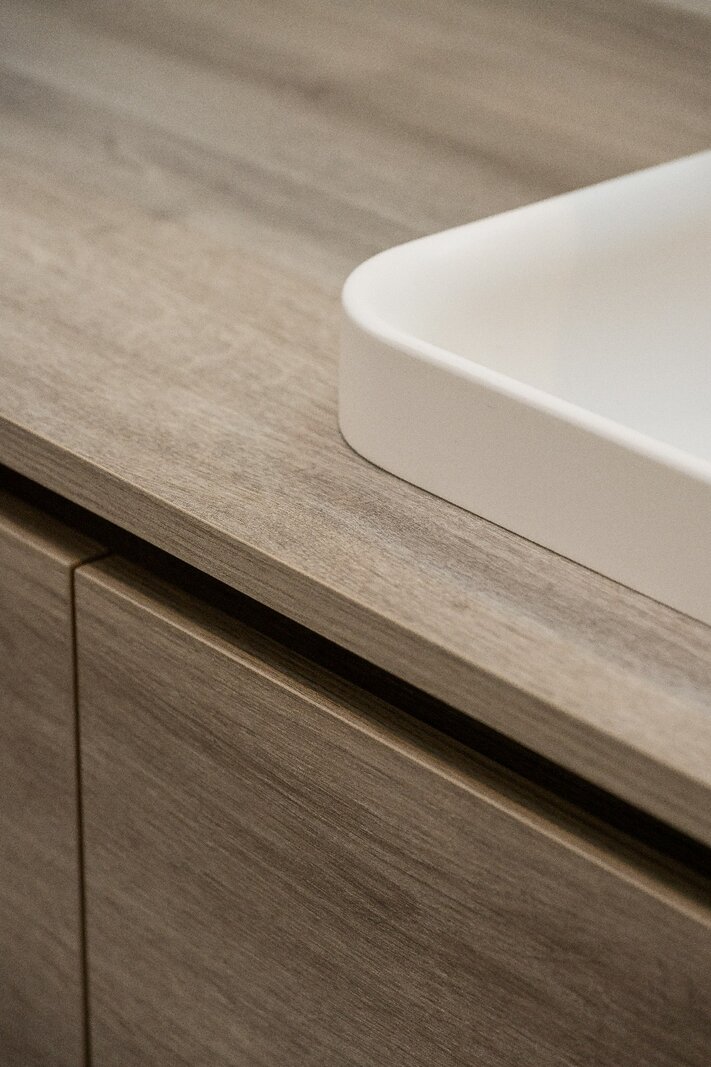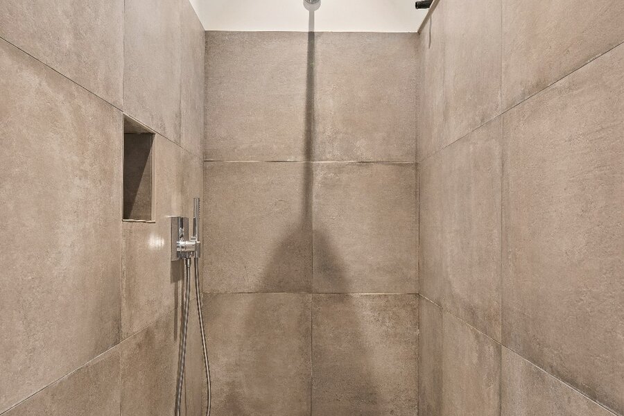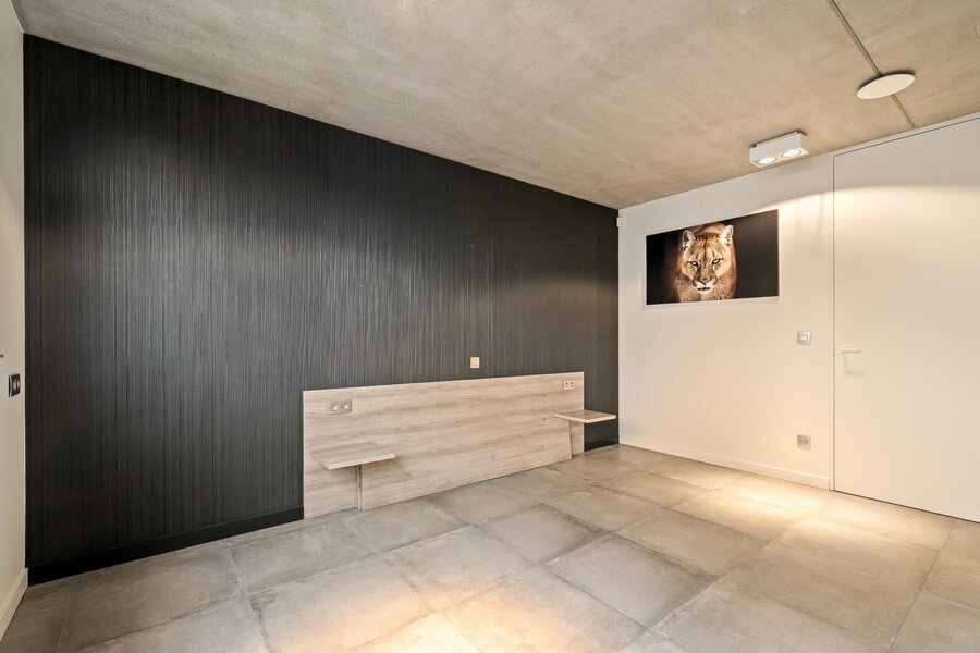 Het slaapgedeelte omvat twee volwaardige slaapkamers. Daarnaast is er een bureauruimte die eenvoudig kan worden ingericht als derde slaapkamer of hobbyruimte. De badkamer beschikt over een ruime inloopdouche, een dubbele wastafel en ingemaakte kasten.