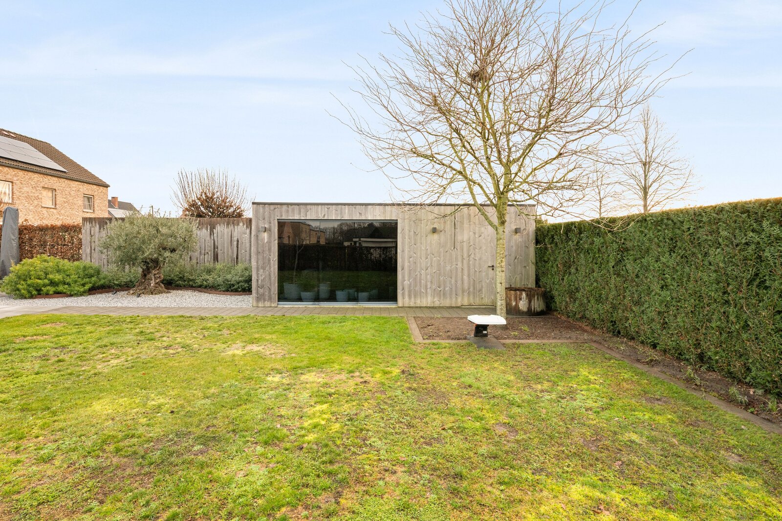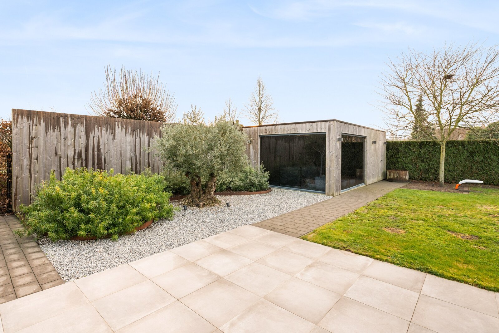Ook buiten is het aangenaam vertoeven. Het zuidgericht terras biedt de ideale setting om volop van de tuin te genieten. De tuin is smaakvol aangelegd en voorzien van buitenverlichting. Bovendien is er een bijgebouw dat perfect kan dienen als buiten-eetruimte of lounge tijdens de zomermaanden, met aansluitend een aparte berging.