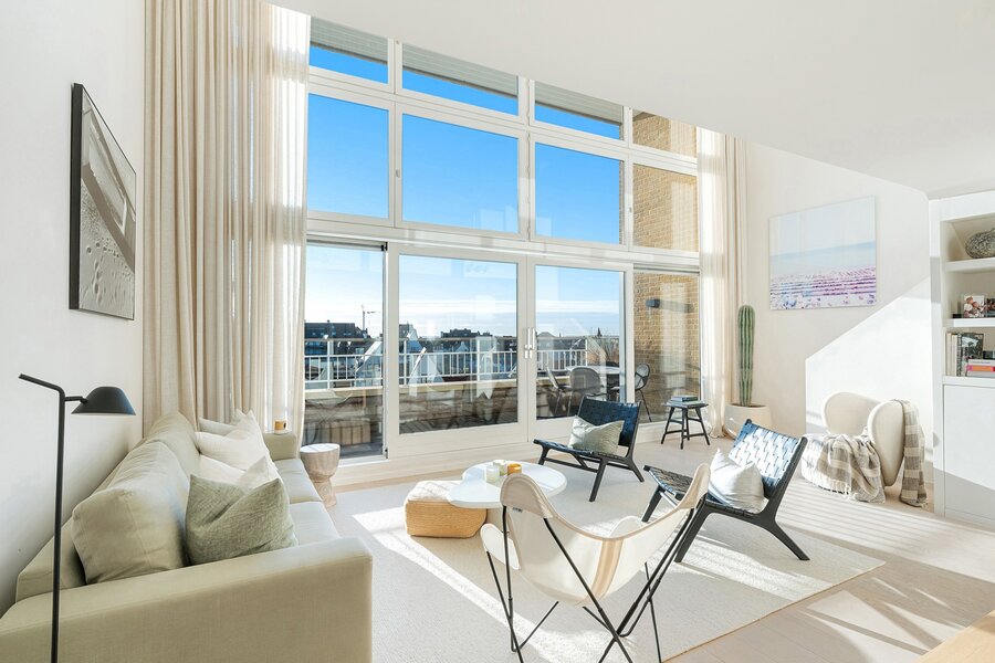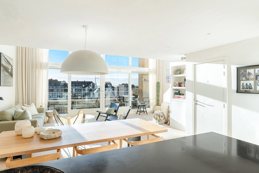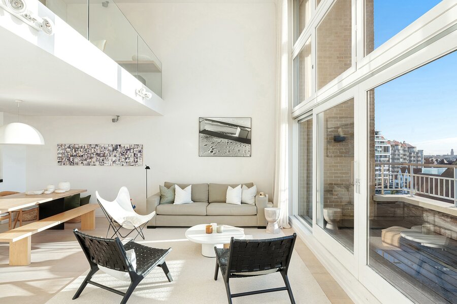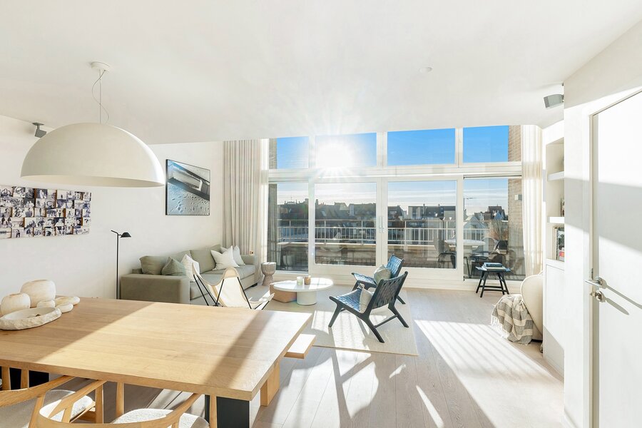 In Duinbergen, op enkele passen van de zeedijk en de RSBC, bevindt zich dit uitzonderlijk mezzanine-appartement van ca. 180 m² (7m gevelbreedte) in een mooi gebouw, Residentie Capri. Volledig zuidgericht en 4 grote slaapkamers, mogelijkheid tot aankoop van een goede garagebox in het gebouw.