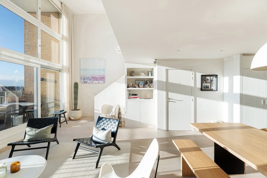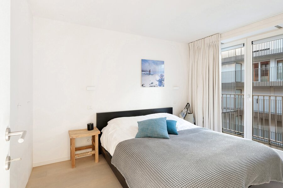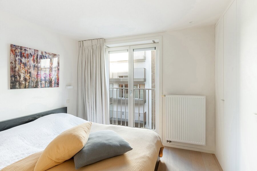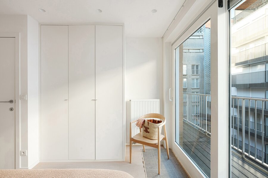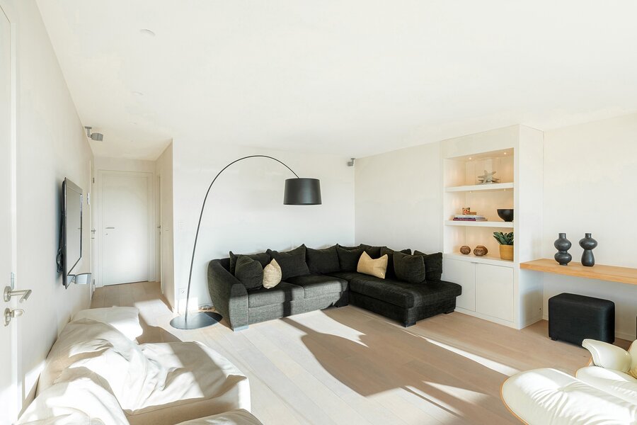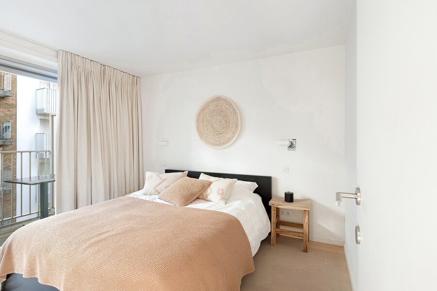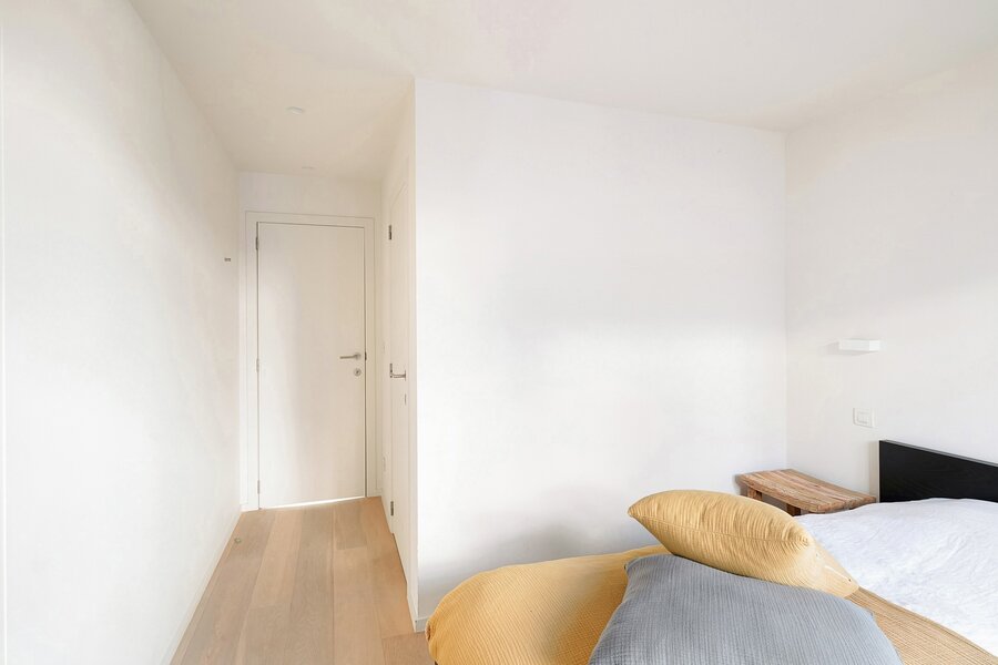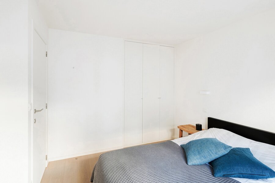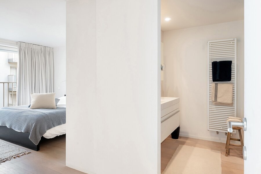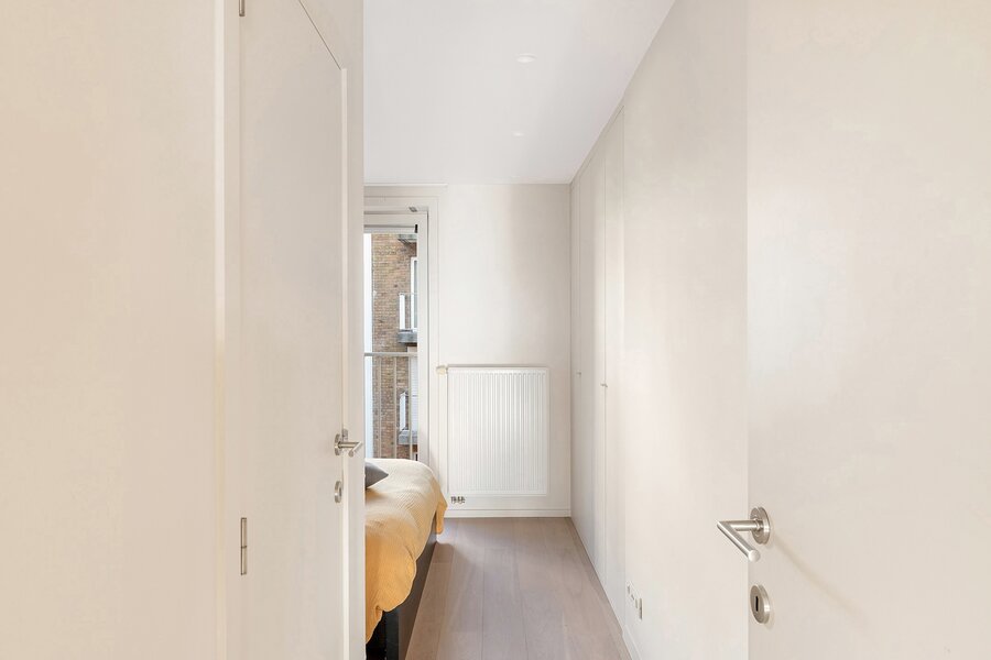Dit appartement werd ingericht met hoogwaardige materialen en oog voor detail: maatkasten in elke kamer, inbouwspots, ingewerkte plinten, …