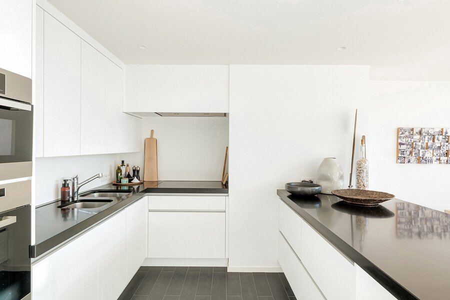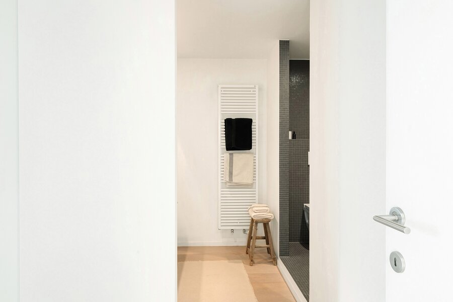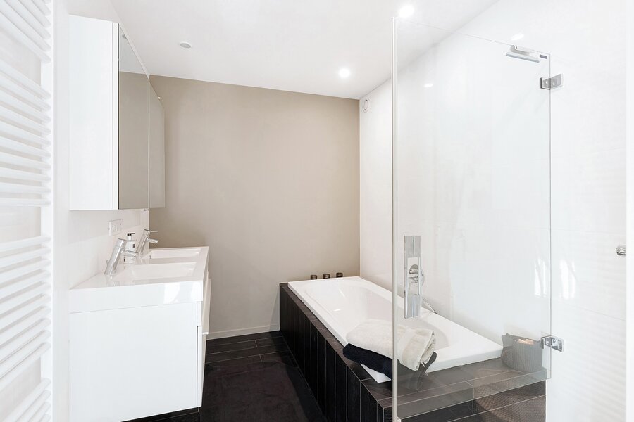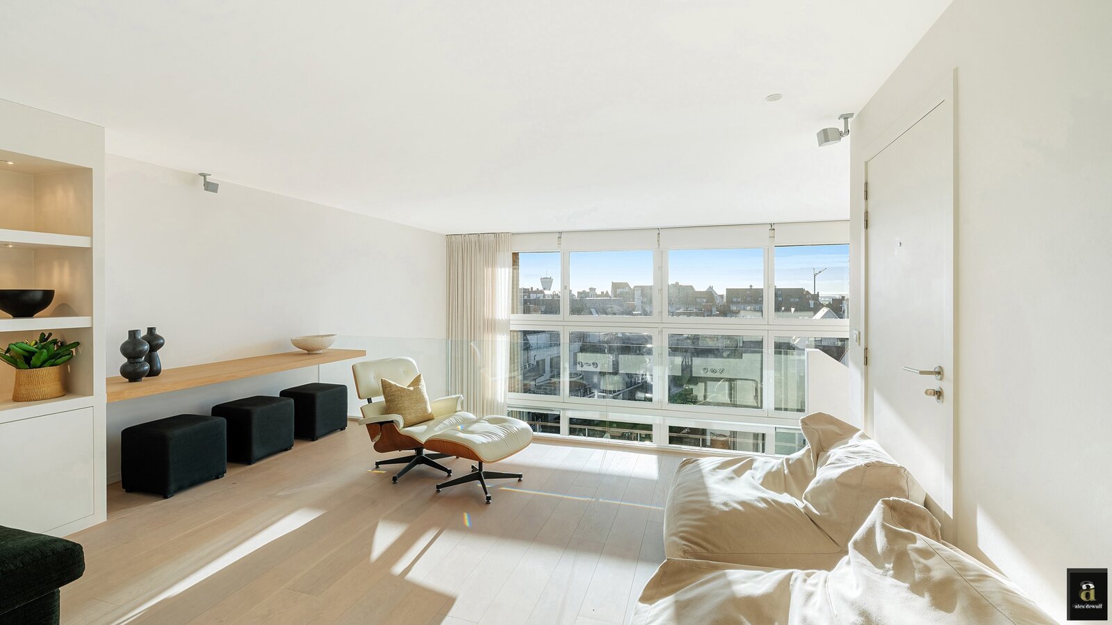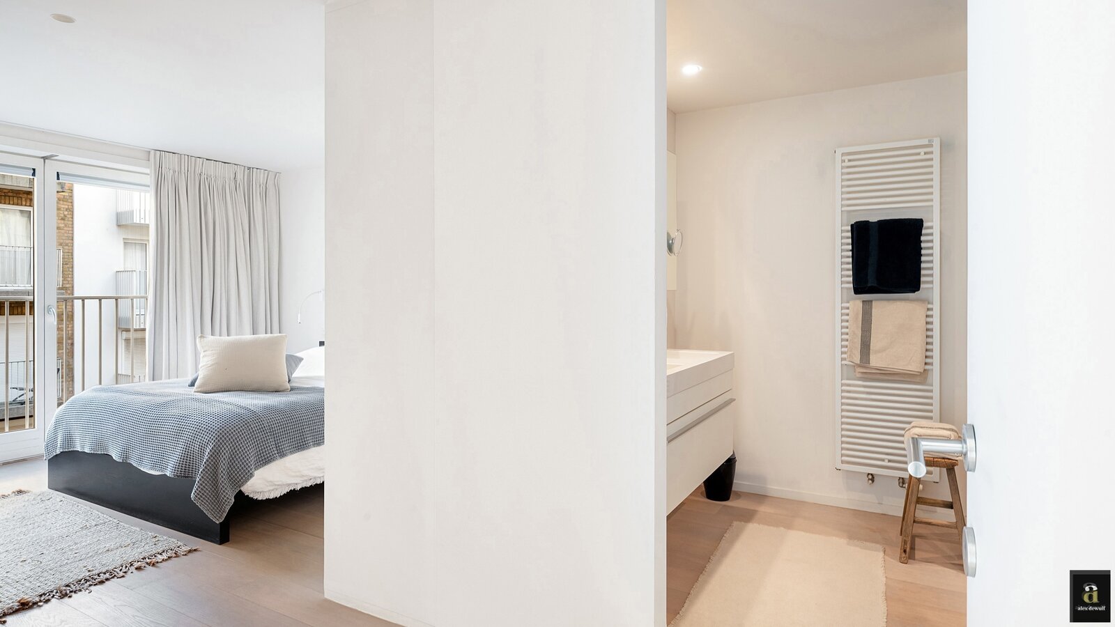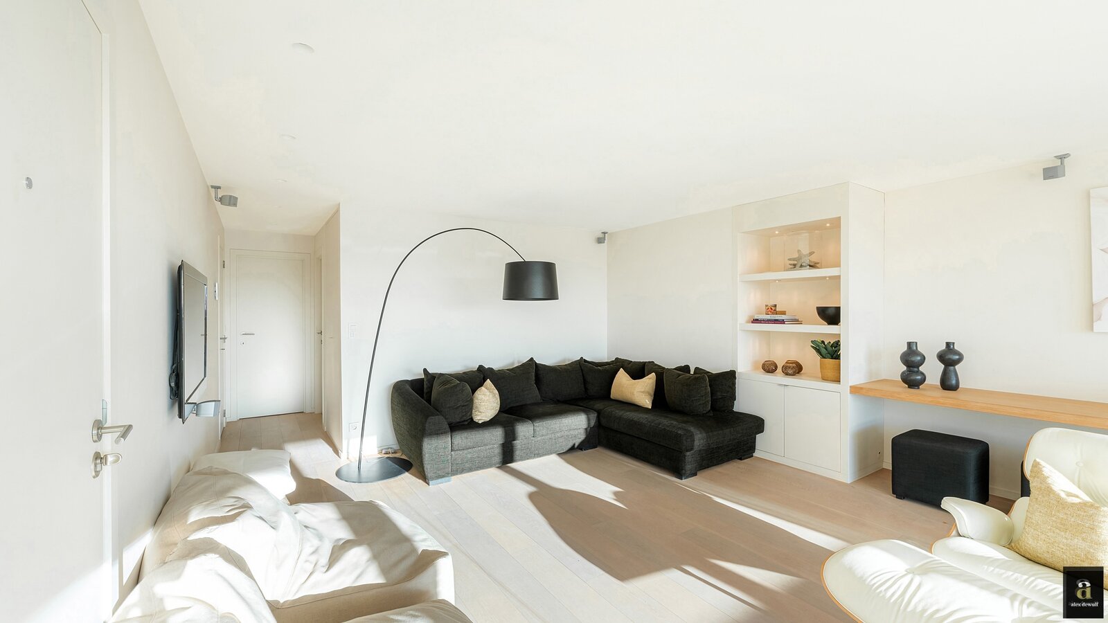 Dit appartement werd ingericht met hoogwaardige materialen en oog voor detail: maatkasten in elke kamer, inbouwspots, ingewerkte plinten, …