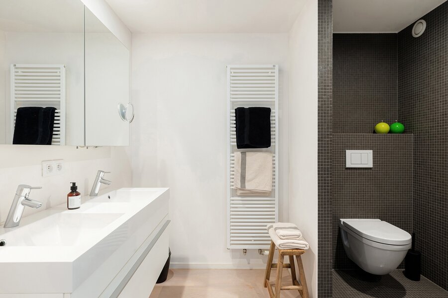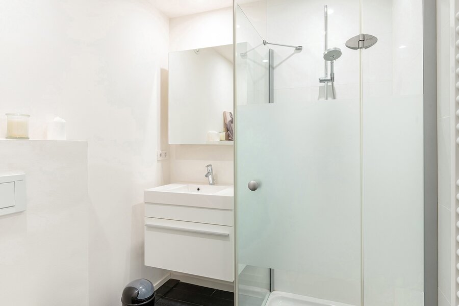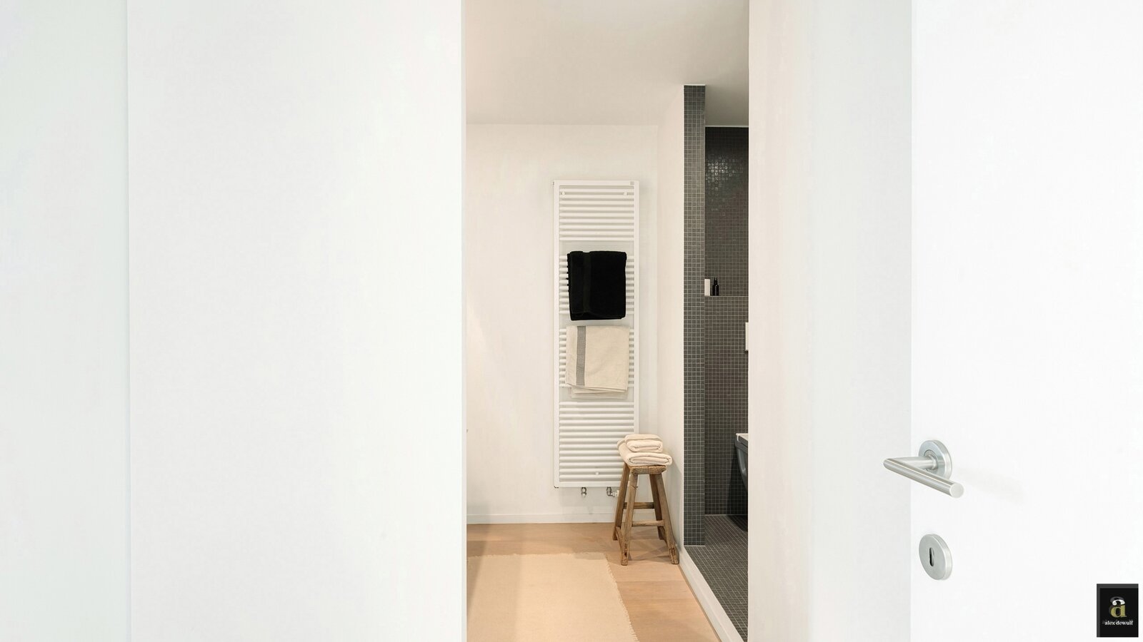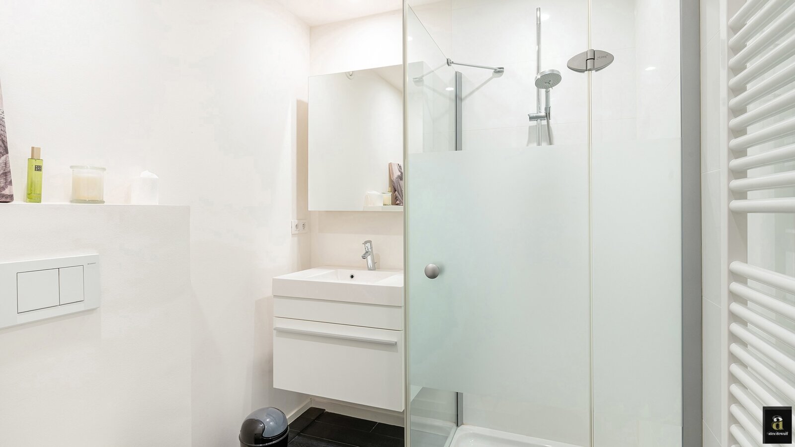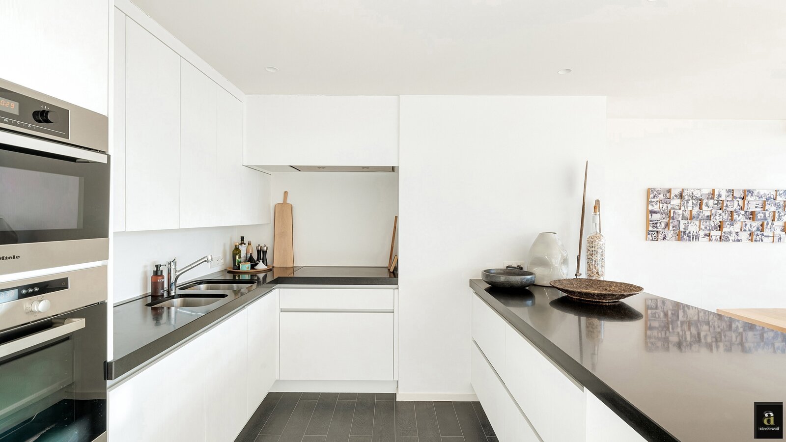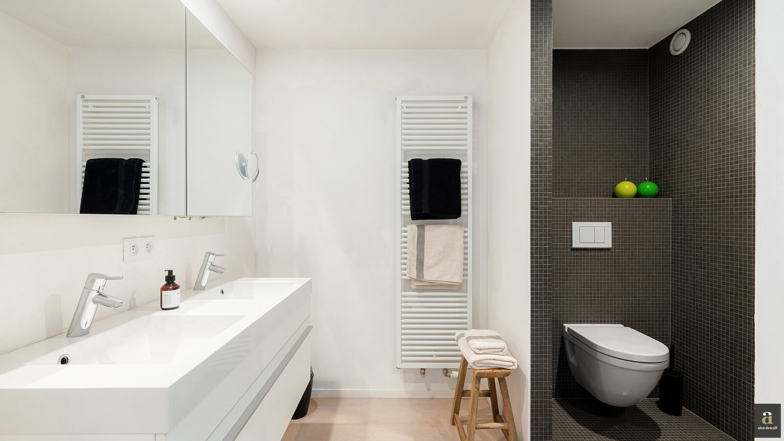 Dit appartement werd ingericht met hoogwaardige materialen en oog voor detail: maatkasten in elke kamer, inbouwspots, ingewerkte plinten, …