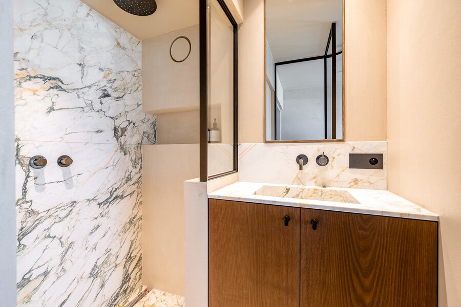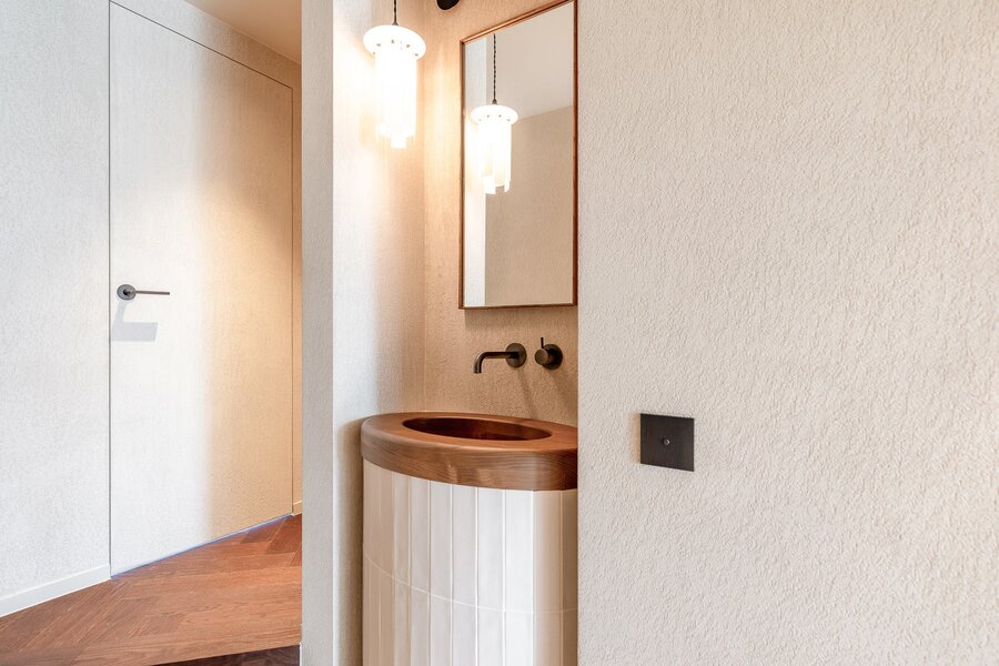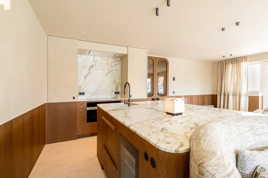 Het appartement werd afgewerkt tot in de puntjes met een uitzonderlijk oog voor detail.