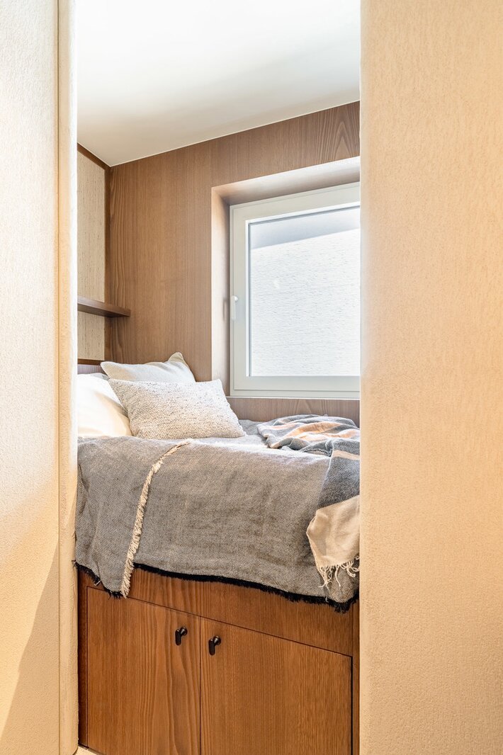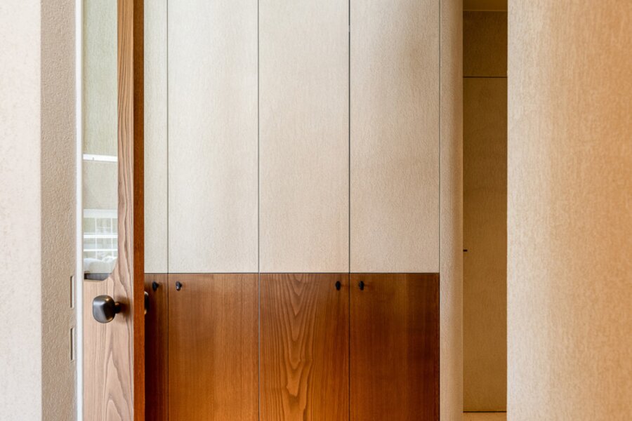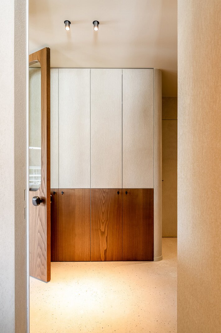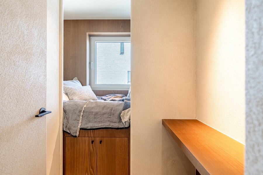 Heel het appartement werd voorzien van enorm veel opbergruimte en ingemaakte kasten.