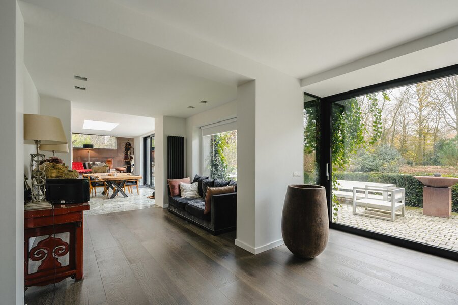 Ideaal gelegen in de wijk Prins van Oranje, beschut tegen inkijk, volledig gerenoveerde en uitgebreide villa met een bruto oppervlakte van ± 625 m², omgeven door een bebost terrein van ongeveer 54 are, en voorzien van een zwembad.