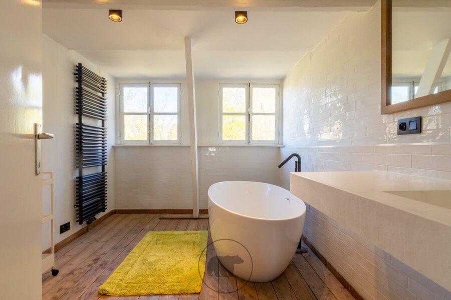 De tweede verdieping heeft nog eens 5 kamers, een doucheruimte en een badkamer met ligbad.
