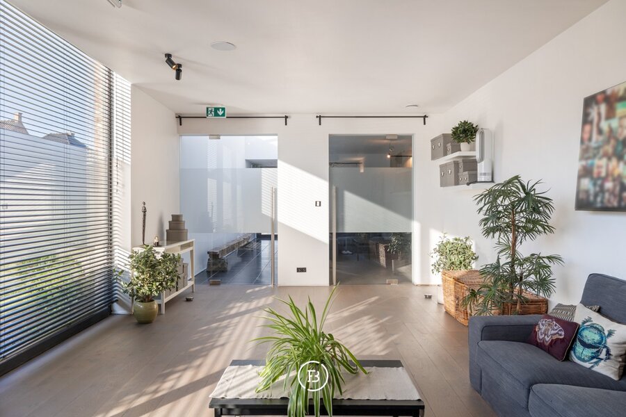 De woning is ook praktisch ingericht voor wie wonen en werken wil combineren. Er zijn twee ruimtes voorzien die geschikt zijn voor een professionele activiteit aan huis.