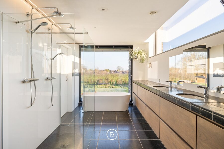 Met een energielabel A en conforme elektriciteit is ook aan duurzaamheid en technische kwaliteit gedacht, wat het geheel toekomstgericht maakt. Deze lichtrijke villa vormt zo een perfecte balans tussen moderne architectuur, comfort en een unieke ligging in het groen.
