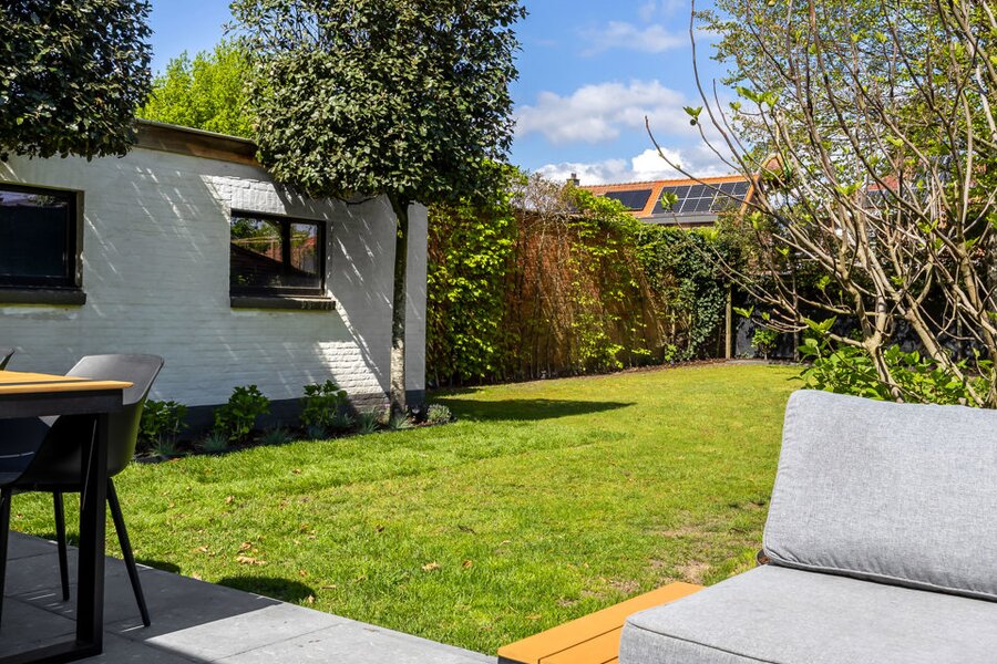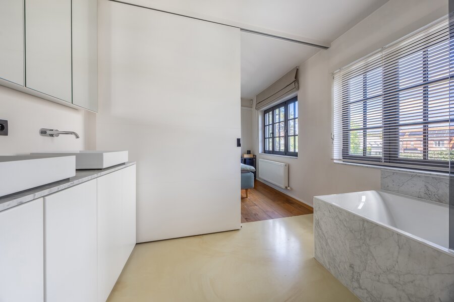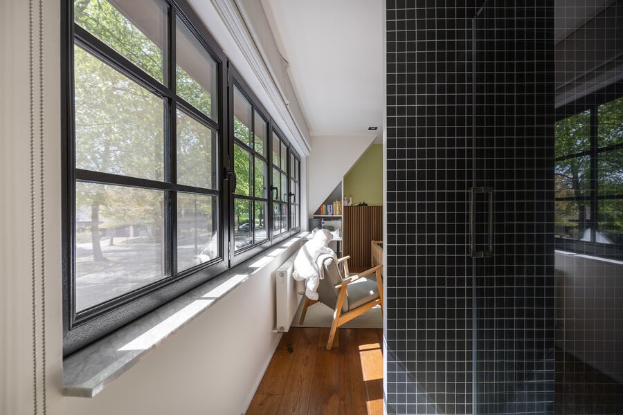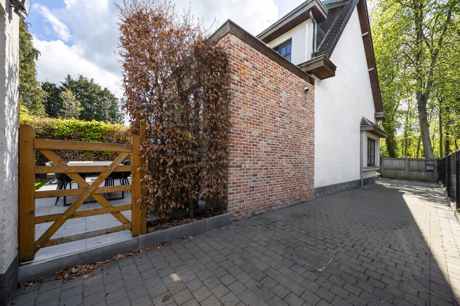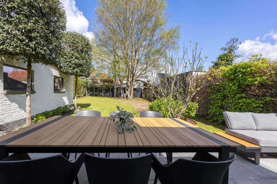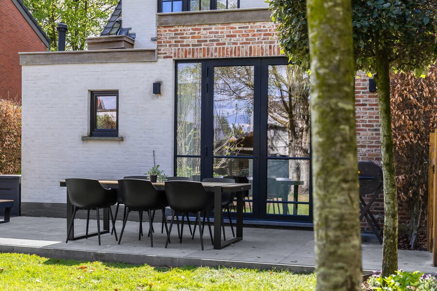 Tot slot beschikt de woning over een losstaande garage met raampartijen, vandaag ingericht als fitnessruimte, waardoor ook hier flexibiliteit en multifunctionaliteit centraal staan.