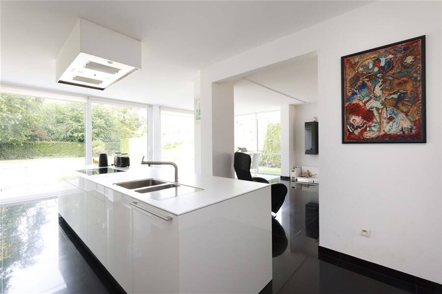 + Open kwaliteitsvolle keuken (Bulthaup) met keukeneiland - zeer veel kastruimte - ingebouwde toestellen van Miele