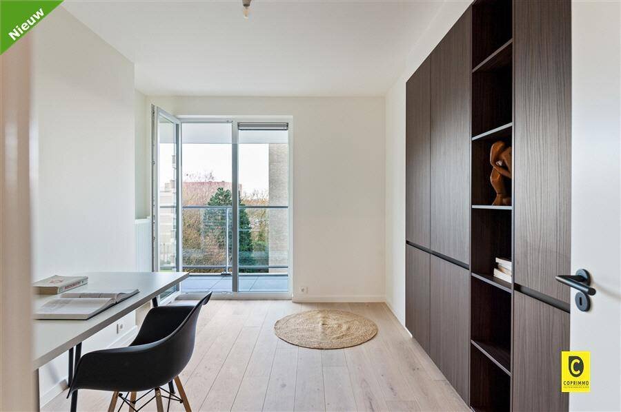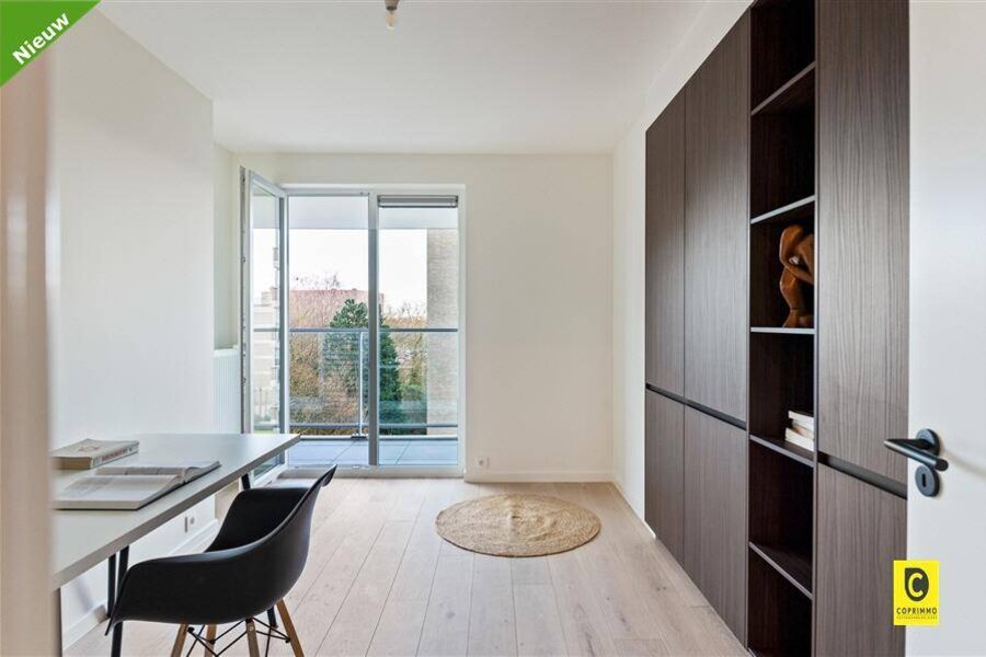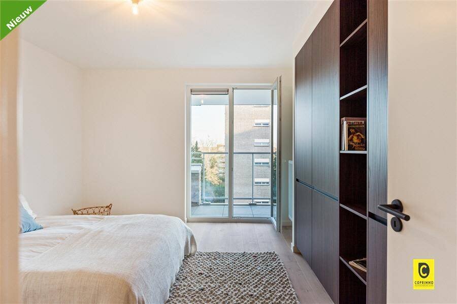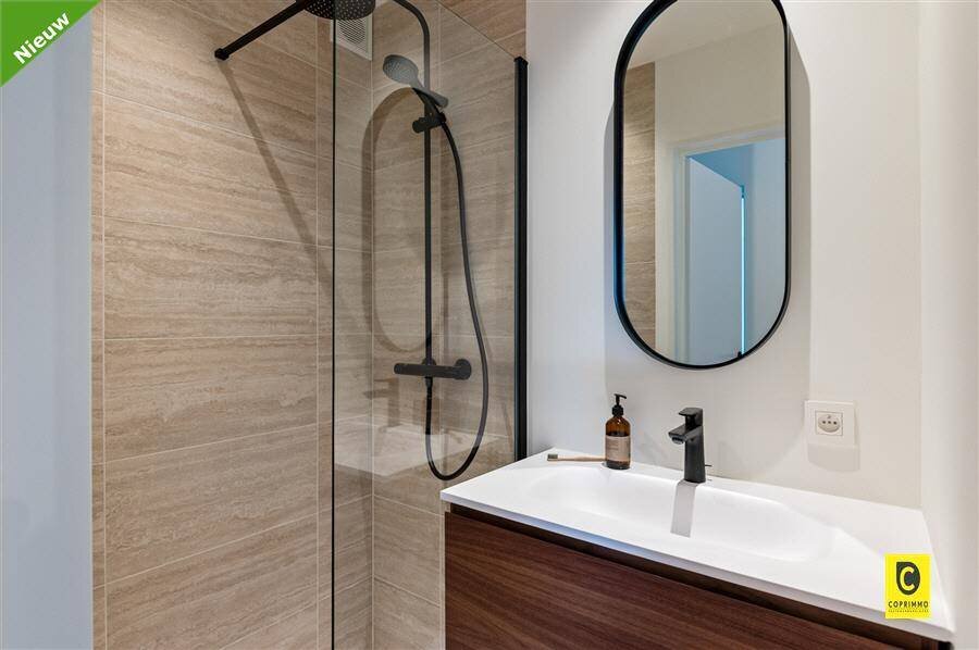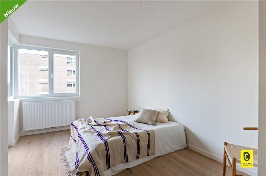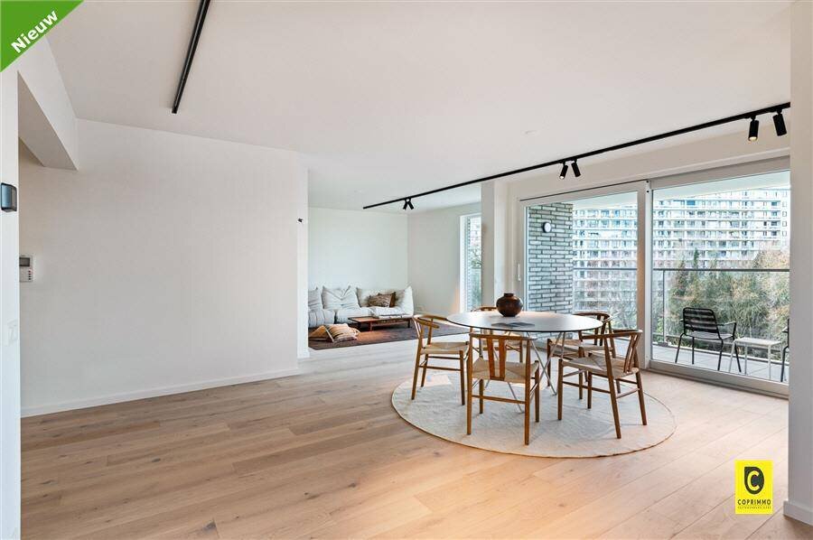 U betreedt dit klassevol appartement via de inkomhal met veiligheidsdeur en vestiaire. De parketvloer werd doorgetrokken in nagenoeg heel het appartement. In de riante leefruimte (49m²) accentueert de lichtinval het ruimtegevoel en de hoge afwerkingsgraad. De prachtige open keuken voorziet in kwalitatieve toestellen. De travertin-look vloer, het gemarmerde composieten werkblad en de hedendaagse design-verlichting zorgen voor nog meer cachet. De wasruimte is apart.