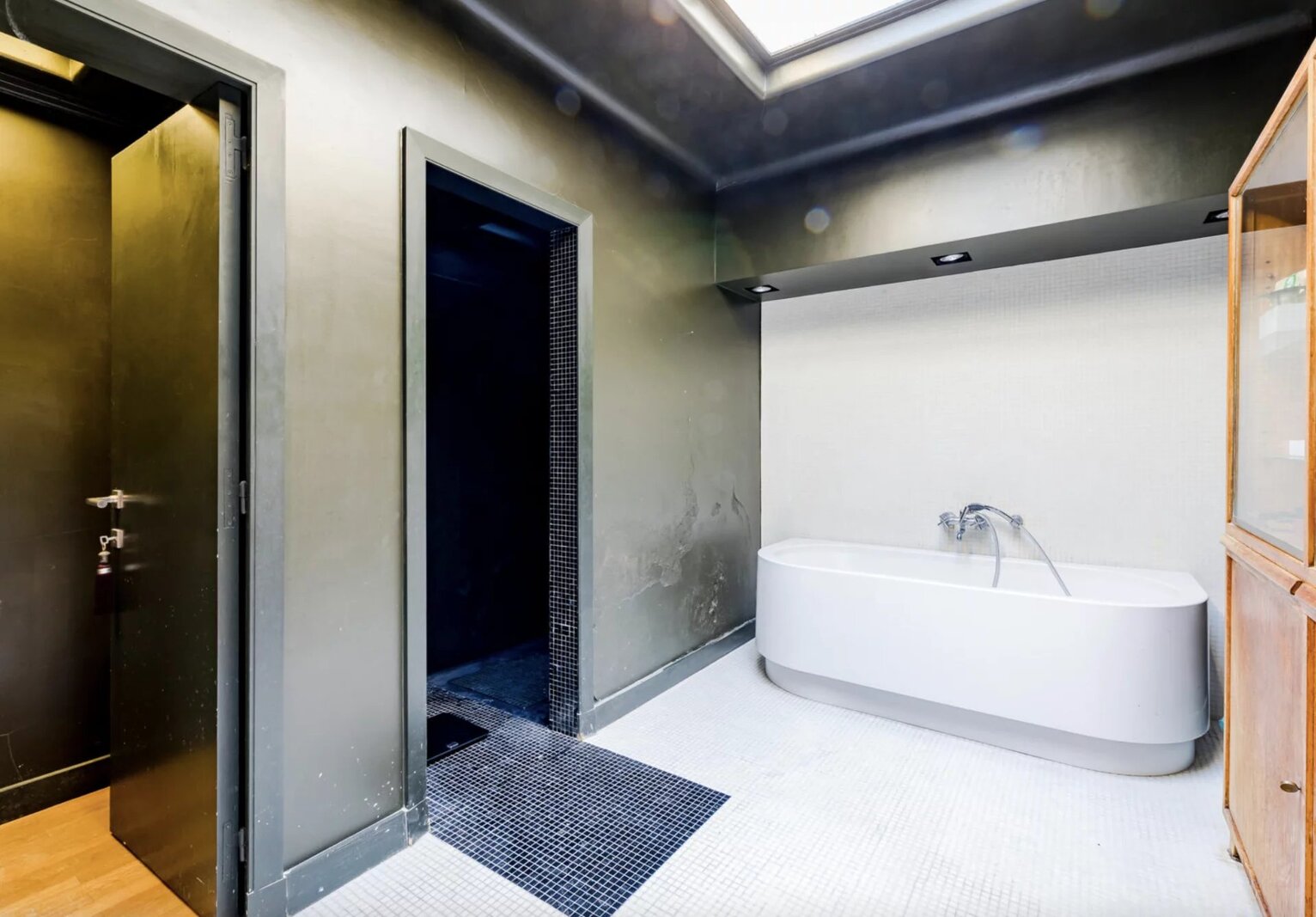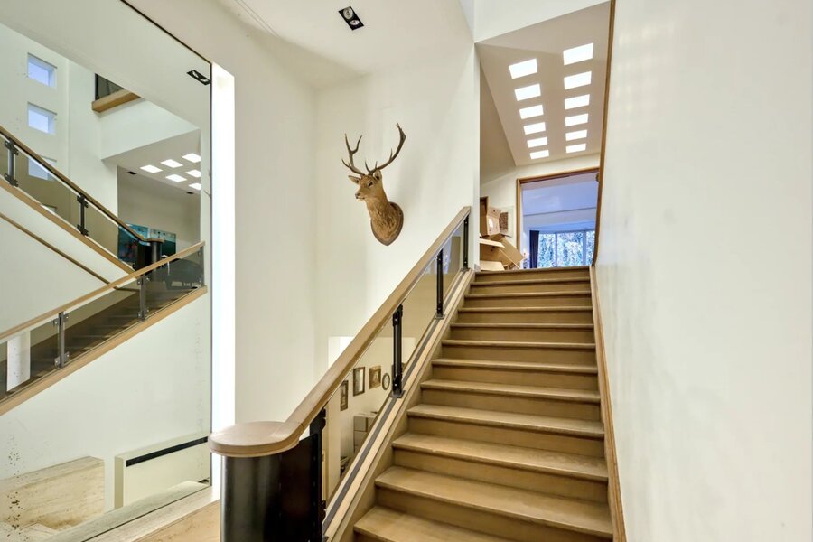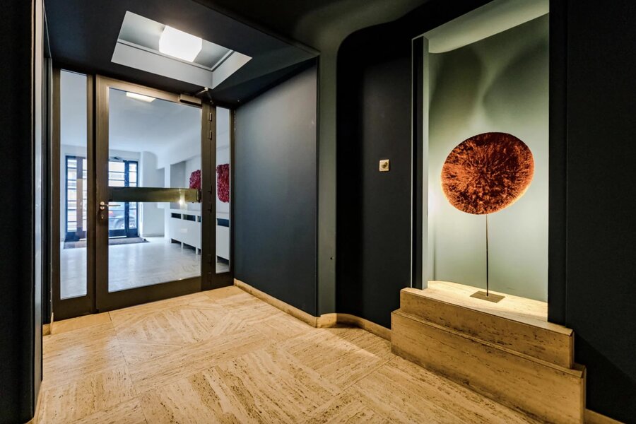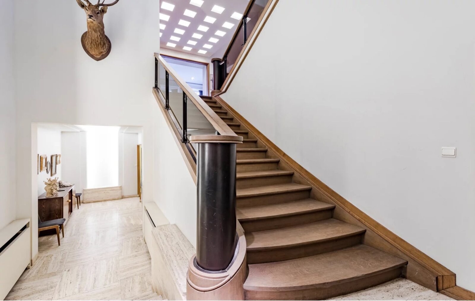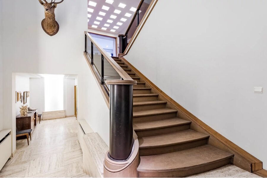 Hoge plafonds, travertin vloeren, origineel parket en architectonische details voegen verfijning en authenticiteit toe.