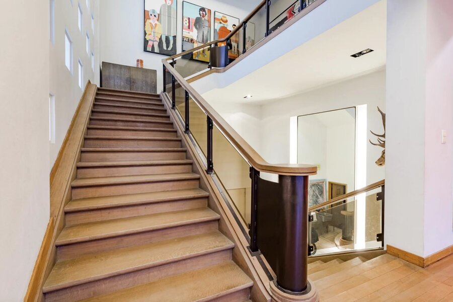 Het voorste en achterste deel van het gebouw kunnen worden samengevoegd tot één woning met ongeveer tien slaapkamers en badkamers.
