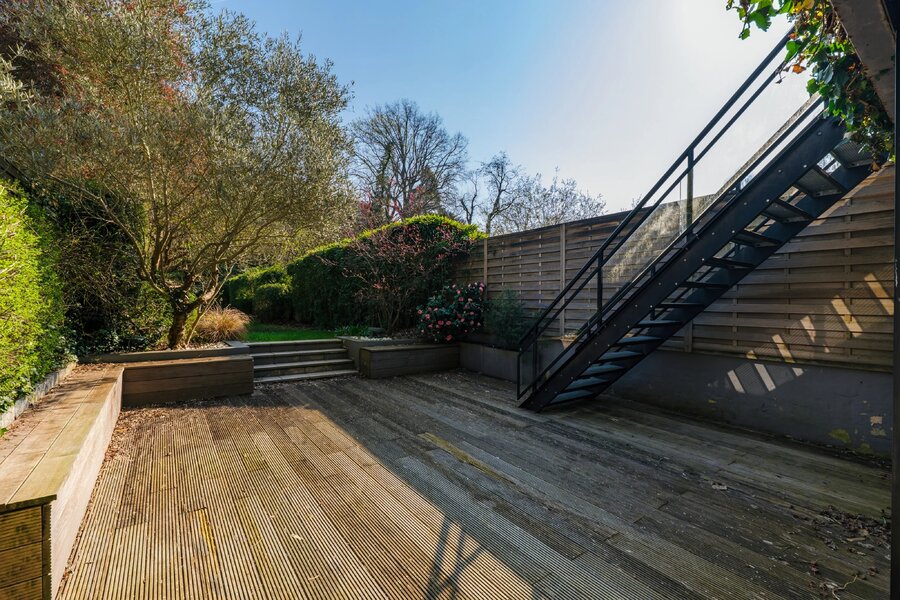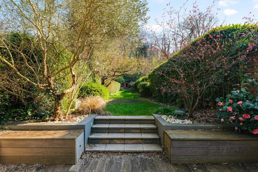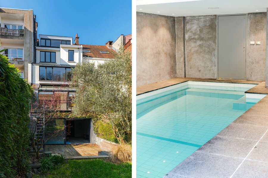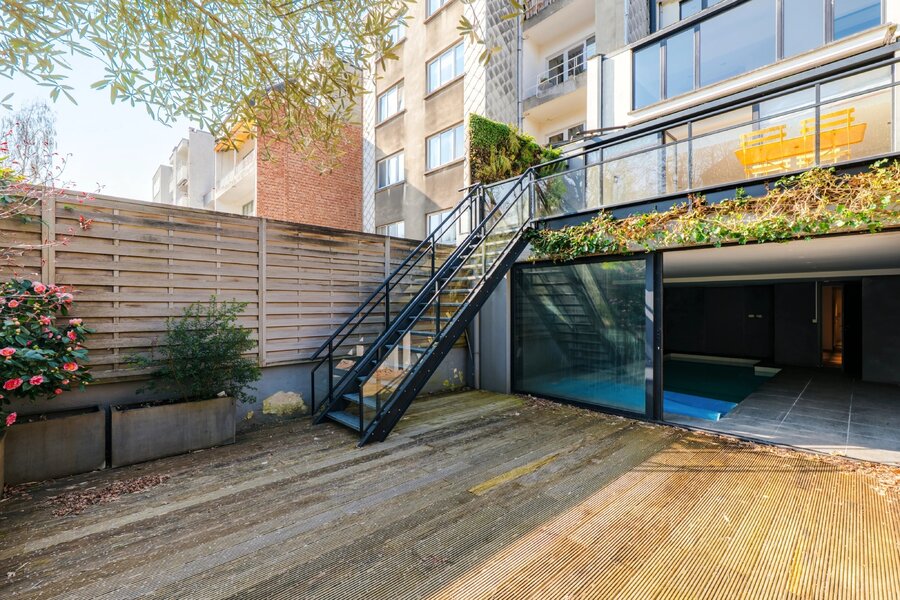 Buiten: een aangelegde tuin, privé en zonder inkijk, nodigt uit tot ontspanning. Het zwembad rondt dit zeldzame pand af, en biedt een bevoorrechte woonomgeving voor gezellige momenten met familie of vrienden.