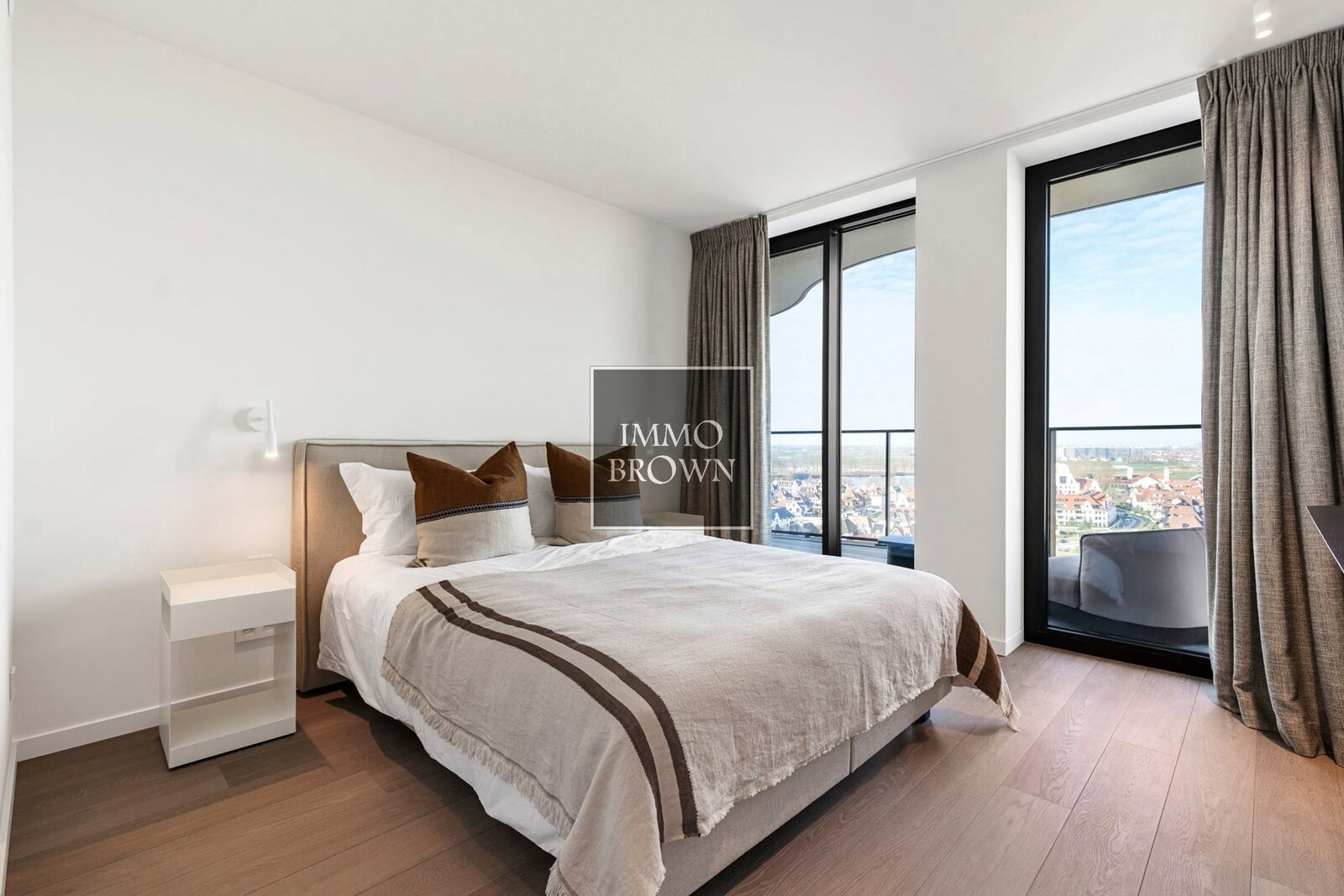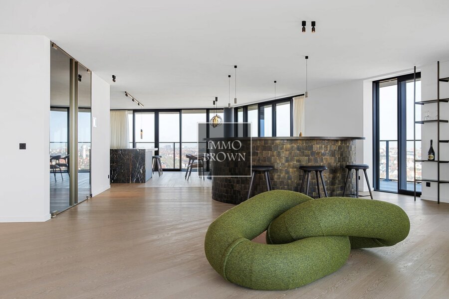 Deze uitzonderlijke penthouse van 300 m², gelegen op de 13de verdieping van de prestigieuze nieuwbouwresidentie Lake Tower, biedt een panoramisch uitzicht over Knokke en de zee, omlijst door 80 m² aan zonovergoten terrassen.