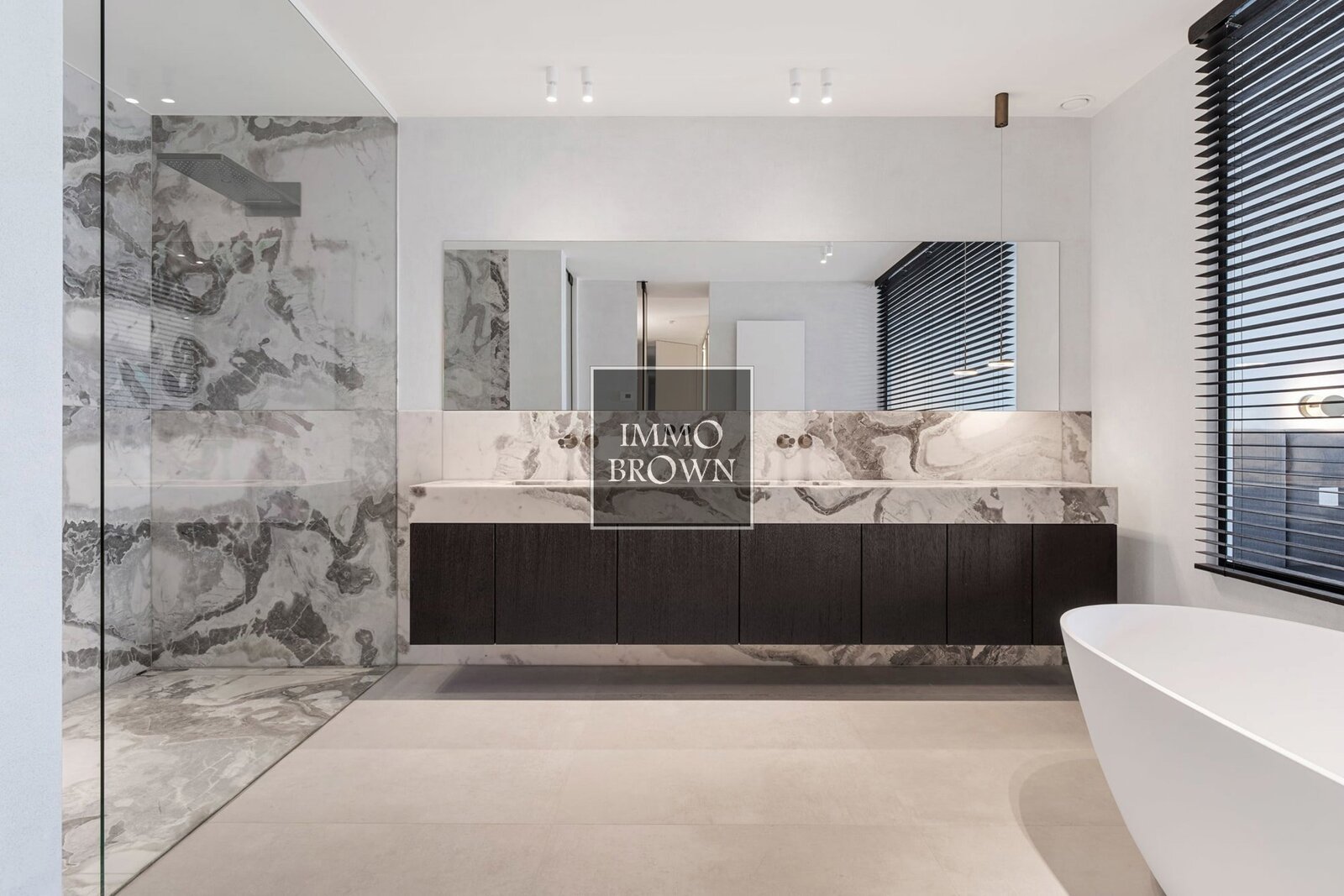 De masterbedroom beschikt over een royale inloopdressing en een en-suite badkamer met zowel een bad als een aparte douche. Tevens zijn er twee ruime slaapkamers, elk voorzien van een eigen moderne badkamer met douche.