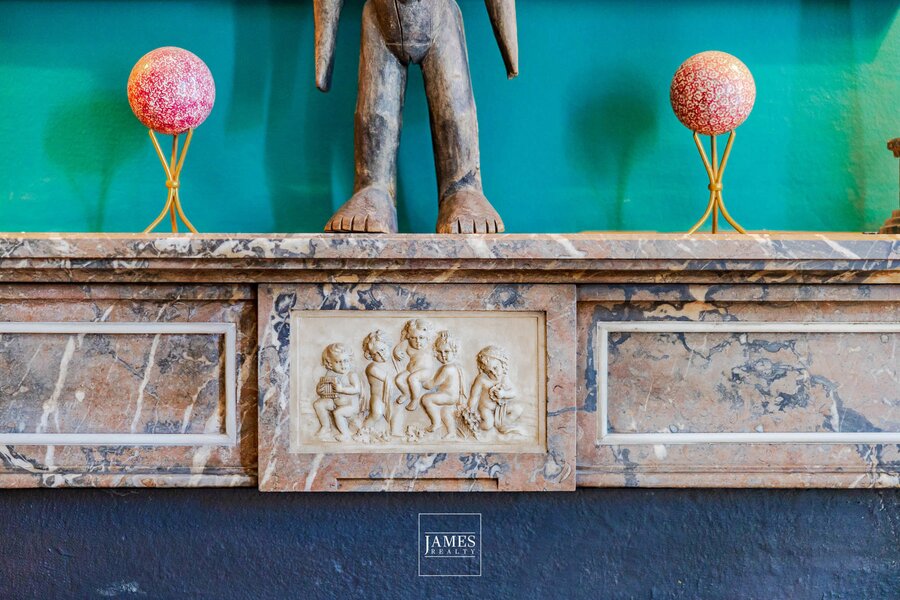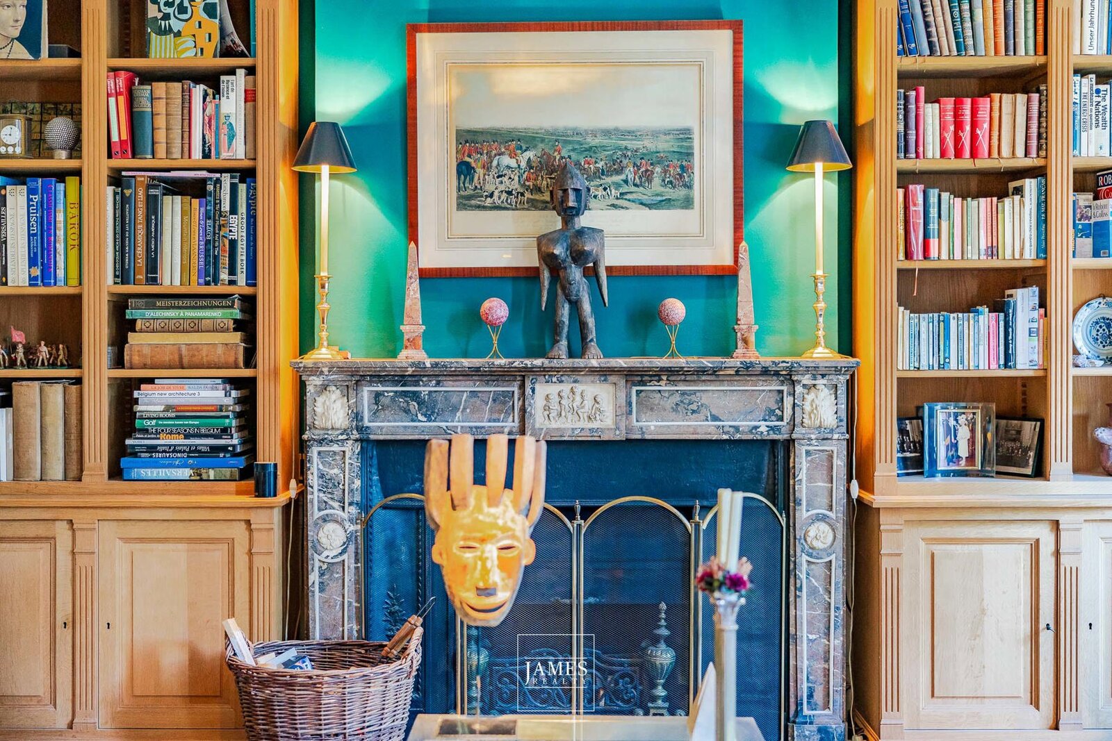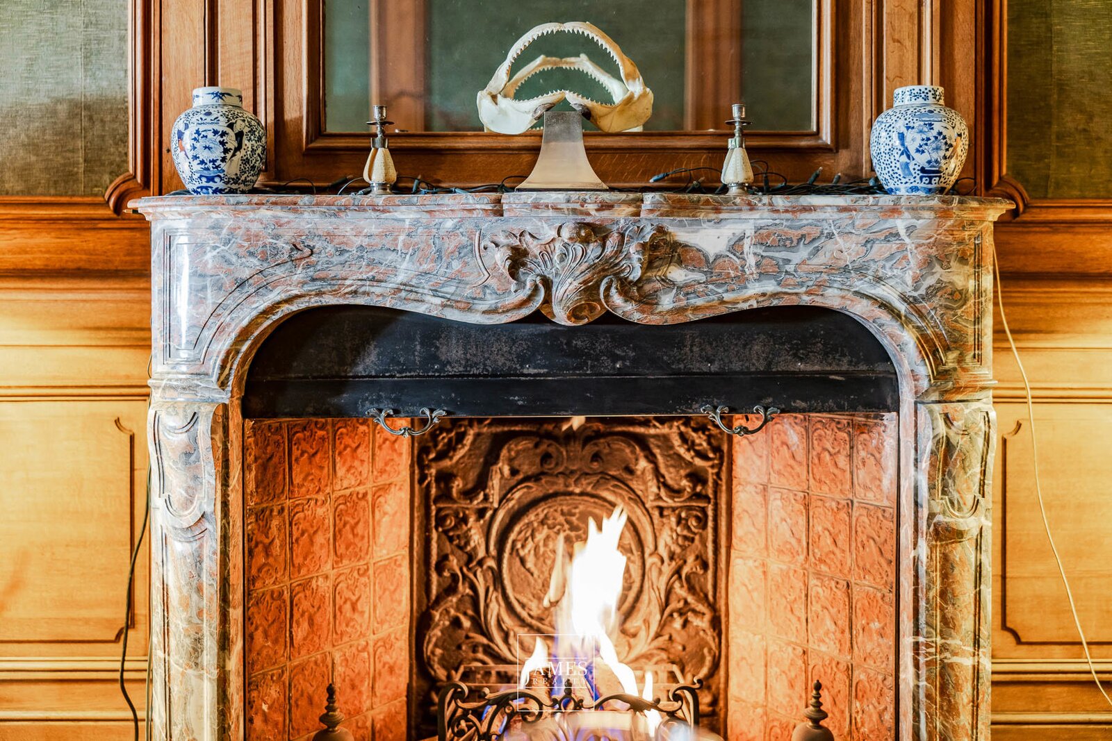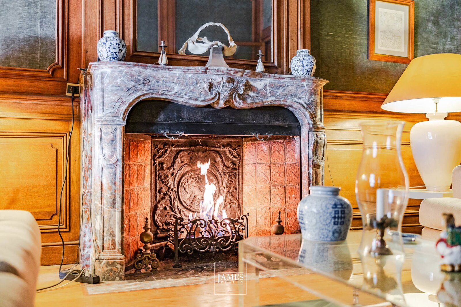 Woonkamer aan de voorkant met open haard - mooie parketvloer