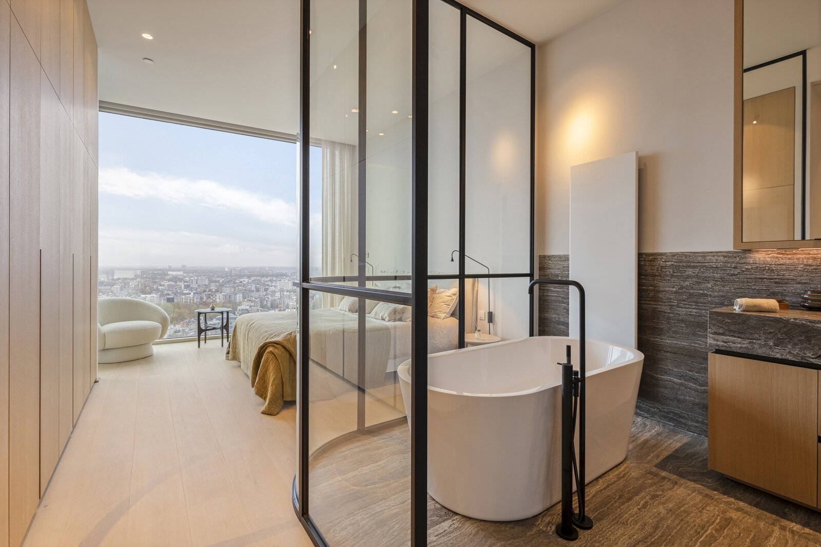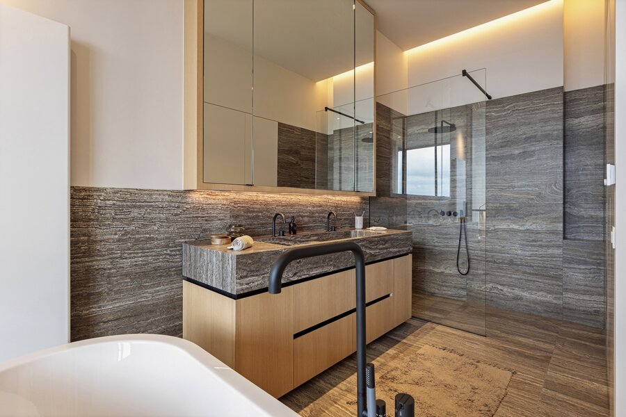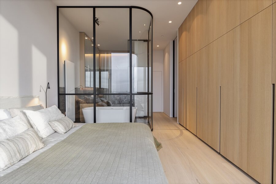 Een royale lobby leidt u naar de separate liften die toegang geven tot de bovenste penthouses. De Serenity appartementen zijn gelegen op de 22ste tot en met de 26ste verdieping. Optimale luxueuze afwerking op maat, royale glaspartijen en een uitzonderlijk panoramisch zicht !