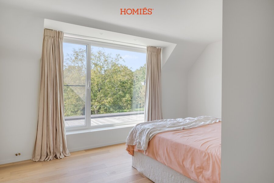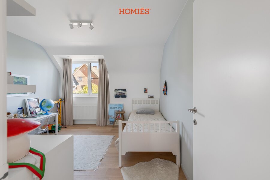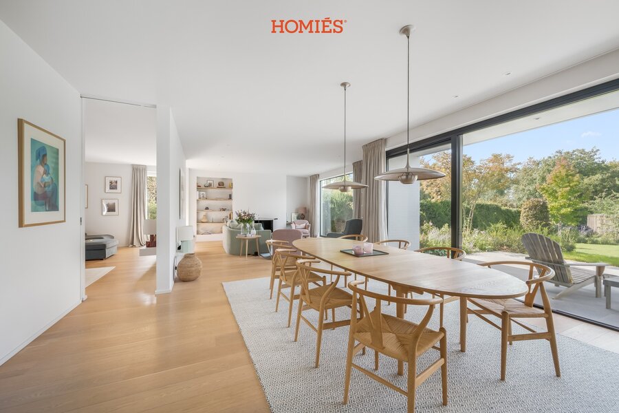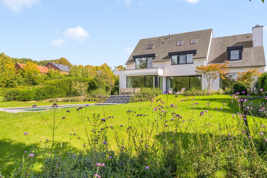 Wij hebben het genoegen u deze tijdloze en uitzonderlijk villa aan te bieden. Deze woonst werd in 2015 gebouwd met bijzonder hoogwaardige materialen. Bovendien is in de prijs eveneens een bouwgrond voorzien. Via de inkomhal betreden we de prachtige leefruimte en eetkamer, die samen het hart van de woning vormen. De grote raampartijen zorgen voor een naadloze overgang naar het schitterende zuidwestgericht gelegen terras met zonneluifel, Vanuit deze woonvertrekken, afgewerkt met een mooie parketvloer, geniet u van een fabuleus uitzicht op de tuin met verwarmd zwembad. De Bulthaup-leefkeuken is voorzien van state-of-the-art Miele-toestellen en beschikt over een aparte eetplaats en een aansluitende berging. Verder vinden we op het gelijkvloers nog een tv-ruimte, een gastentoilet, afzonderlijke dienstingang en toegang tot de kelder. Op de verdieping bevindt zich een masterbedroom met dressing en badkamer. Daarnaast zijn er nog een nachthal, drie volwaardige slaapkamers, een apart toilet, een polyvalente ruimte en een extra badkamer met inloopdouche. Hogerop bevindt zich nog de afgewerkte zolderverdieping die polyvalent kan worden ingevuld met burelen, extra stockage of een extra slaapkamer. Buiten beschikt de villa bovendien nog over een mooi tuinhuis. Extra troeven: inmaakkasten, vloerverwarming, airco, een alarmsysteem, een EV-laadpunt-voorziening, ... Deze discrete villa biedt voldoende parkeergelegenheid op het terrein. Een aanrader!