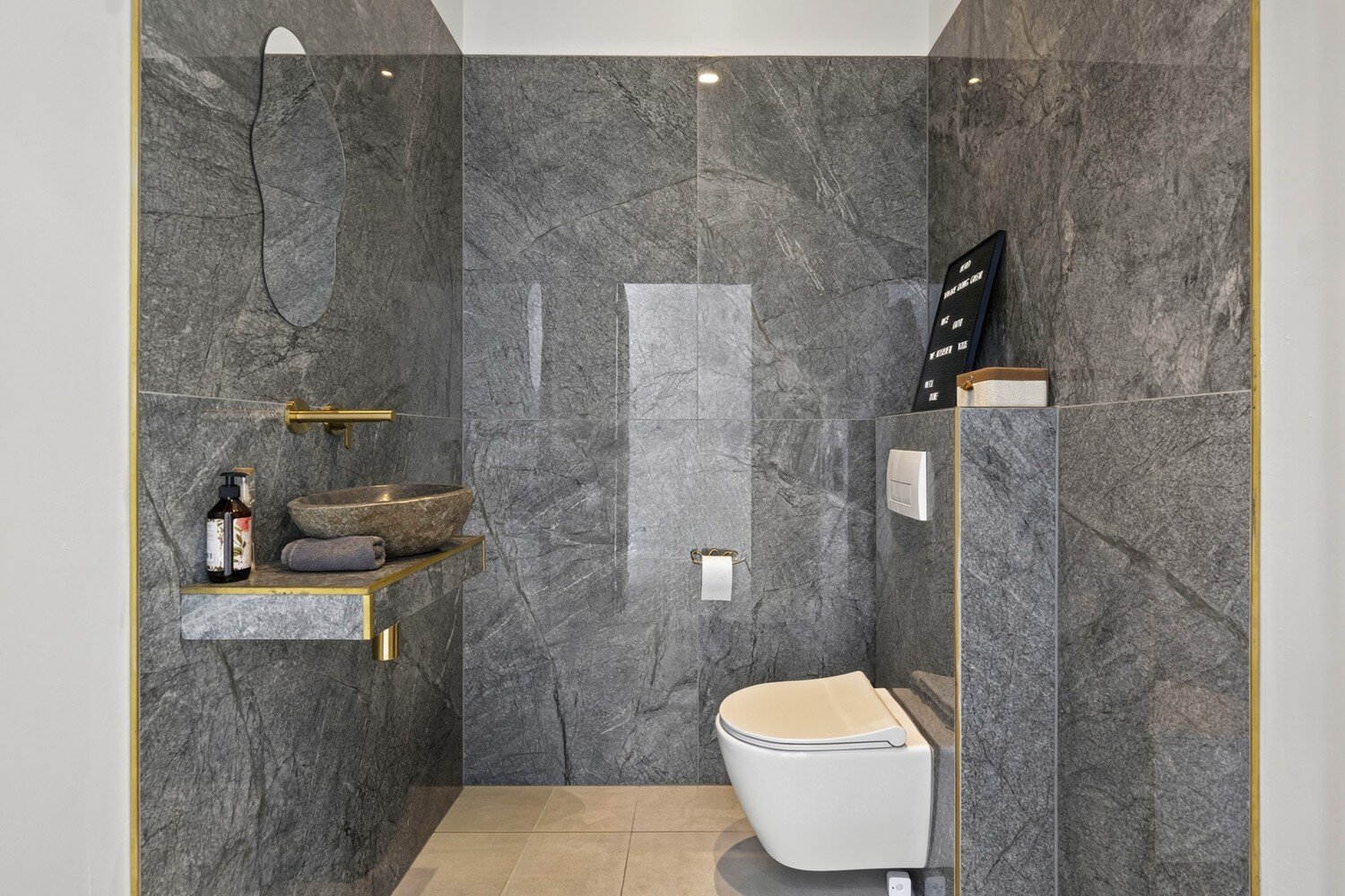 Bij deze renovatie werd er bijkomend rekening gehouden met de mogelijke polyvalente invulling van de eigendom: zo beschikt men op heden over twee gescheiden inkomdeuren, twee reeds ingerichte bureauruimtes, gastentoilet op de hall … Daardoor kan je als nieuwe eigenaar wonen en werken zeer vlot combineren, samen met het ontvangen van klanten. Je kan de bureauruimtes ook perfect gebruiken voor een thuiskantoor of voor inwonende ouders of een nanny. Daarnaast is het mogelijk om een deel van de leefruimtes te gaan omvormen tot kantoorruimtes, zonder in te boeten op het ruimtegevoel.