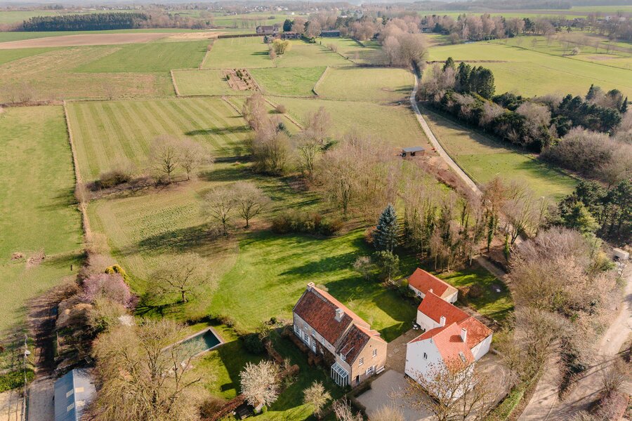 Het geheel is gebouwd op een terrein van 2,15 ha en bestaat uit een hoofdwoning, een gastenverblijf en landbouwgebouwen met een oppervlakte van ongeveer 823 m². De hoofdwoning heeft een oppervlakte van 288 m² (EPB: C) en biedt ruime ontvangstruimtes, 4 slaapkamers en 3 badkamers, met daarboven een inrichtbare zolder. Het gastenverblijf heeft een oppervlakte van 165 m² (EPB: F) en omvat 2 slaapkamers en een badkamer, evenals een kantoor en 2 grote multifunctionele ruimtes met kitchenette. Een schuur met hooizolder, ideaal voor recepties en stallen, geeft structuur aan het landgoed en kijkt uit op de omliggende weiden. Tuin, boomgaard en moestuin vormen een harmonieus geheel, ideaal voor natuurliefhebbers of paardensportprojecten. Mogelijkheid om tegen meerprijs een bouwgrond van 21,79 are met zwembad aan te kopen.
